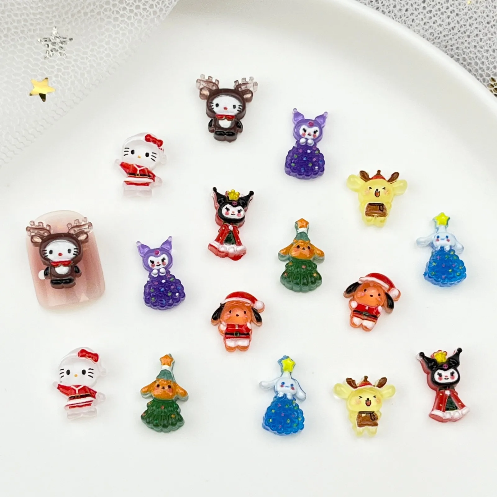 100Pcs Christmas Nail Charms - 3D Santa, Hello Kitty & Kuromi Nail Decor Cute Cartoon Nail Art Accessories for Festive Manicures