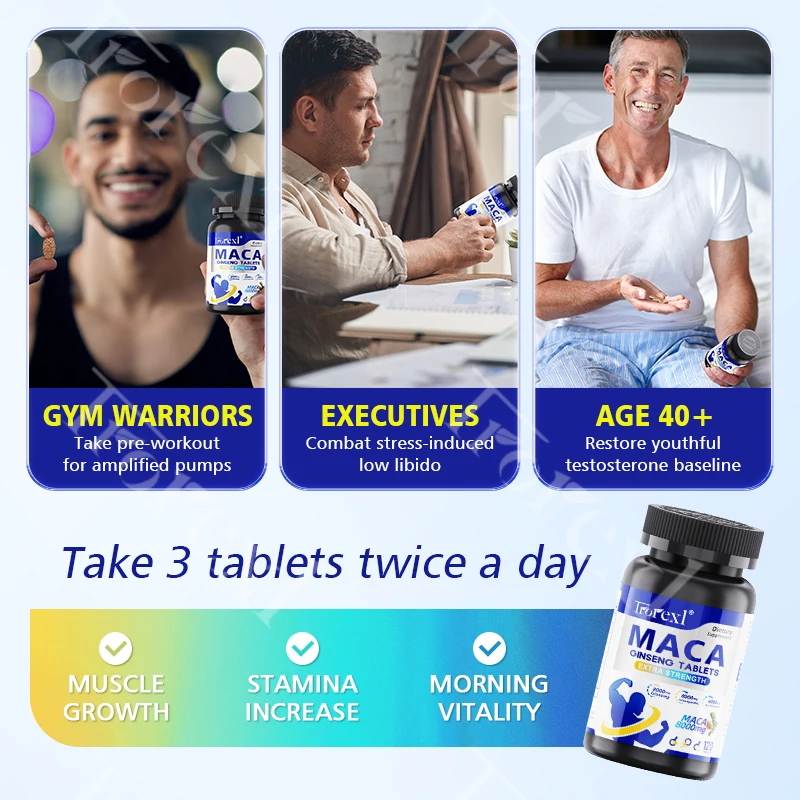 120 Caps MACA Ashwagandha Ginseng Natural Morning Stamina & Boost Flow Enhancer Immune Support | Kosher/Halal Certified