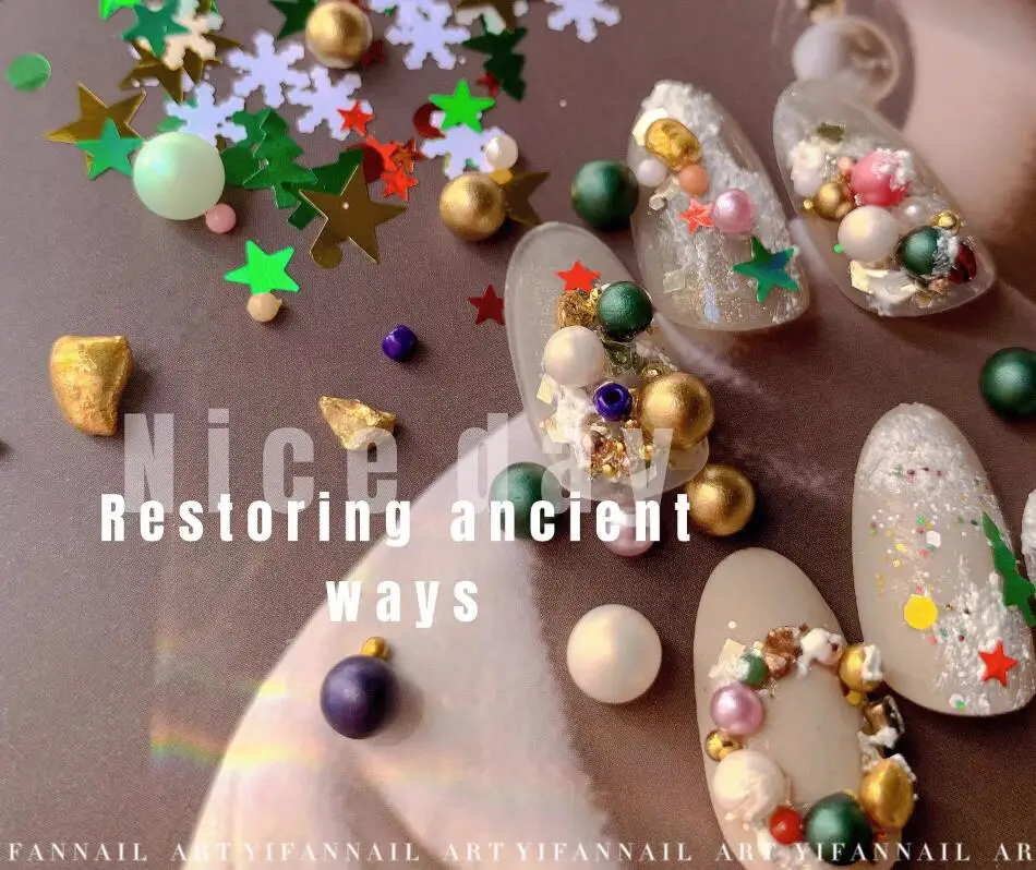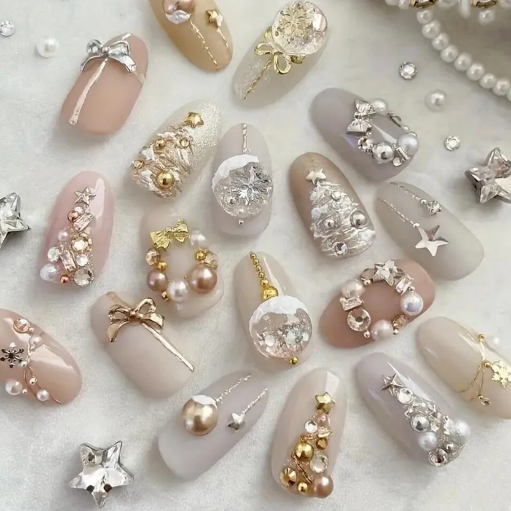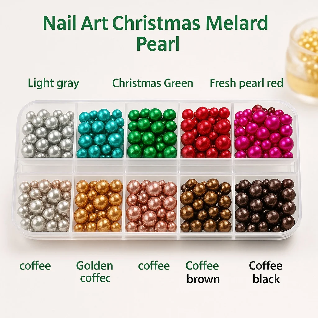 12Grids Christmas Red/Green Pearl Nail Rhinestone Mixed Size Pearlescent Colorful Beads Nali Charms Christmas Manicure Jewelry A
