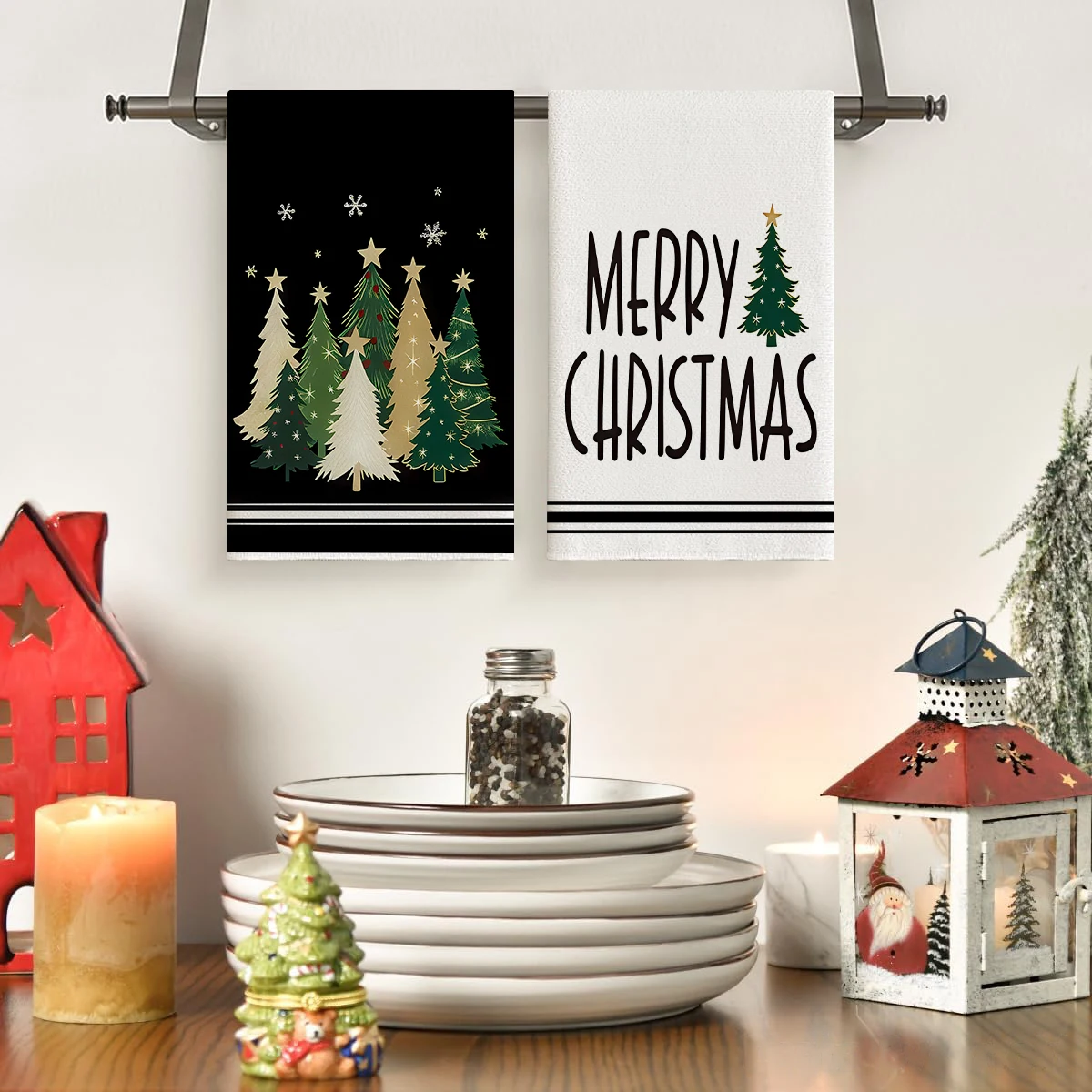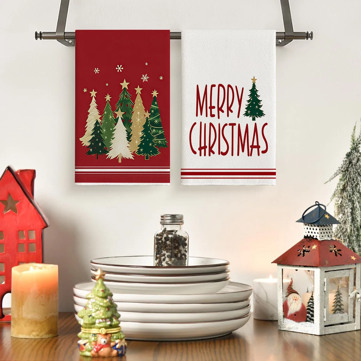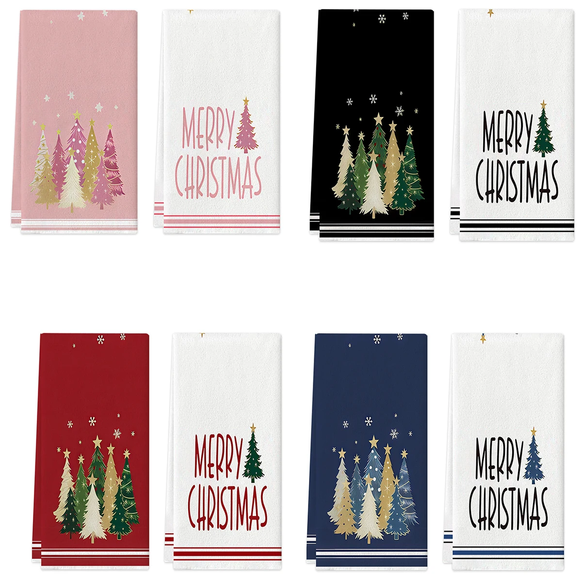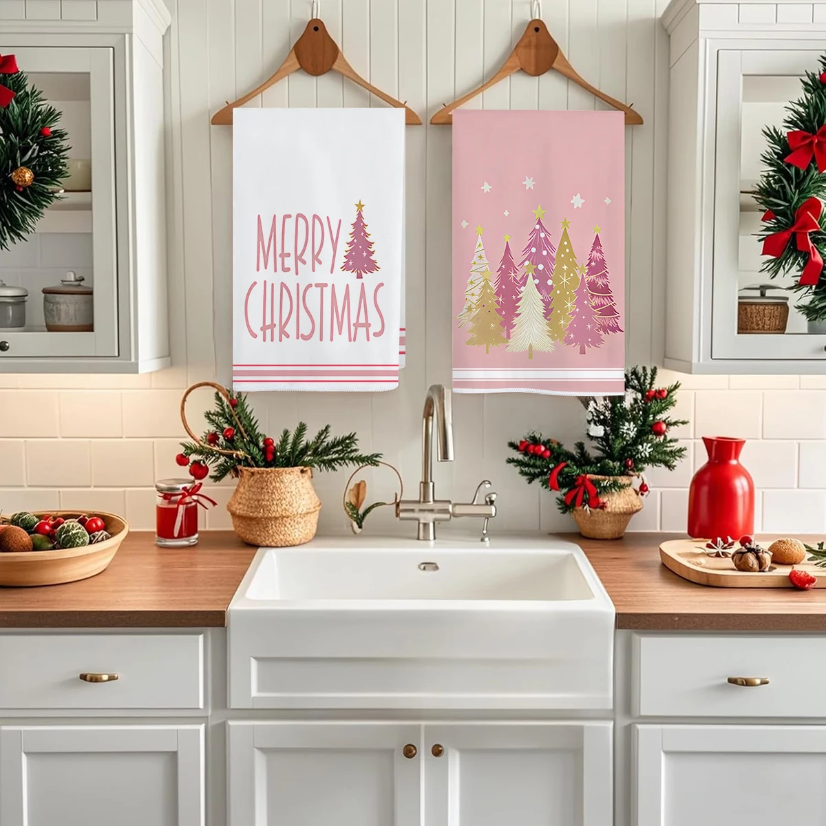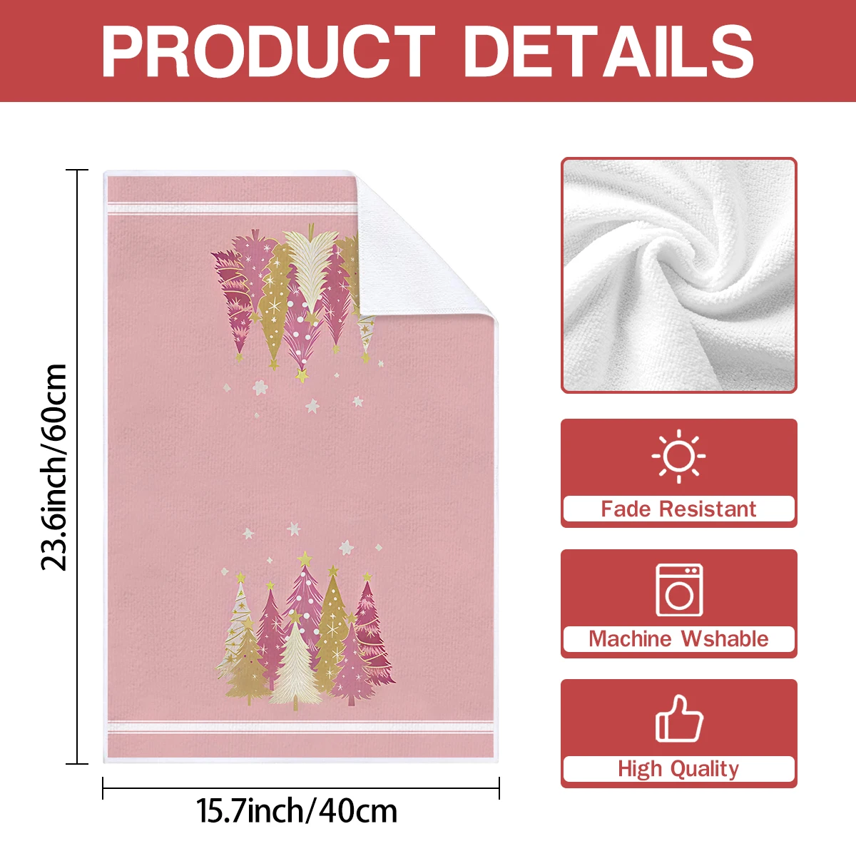 2 Christmas pink Christmas tree kitchen towels, available in various colors and styles, multifunctional towels for Christmas dec