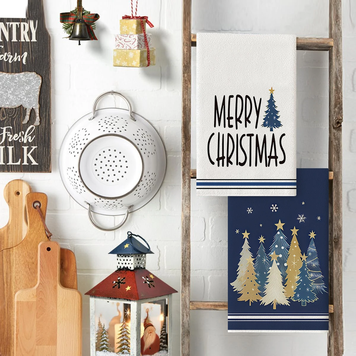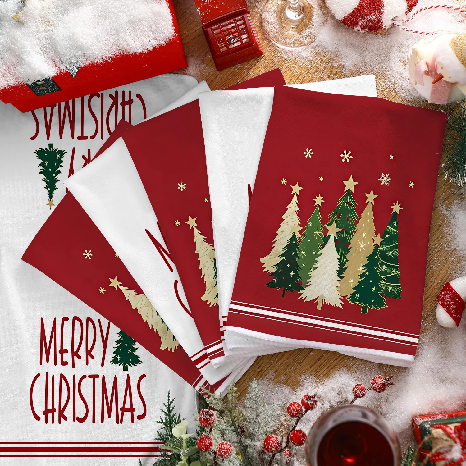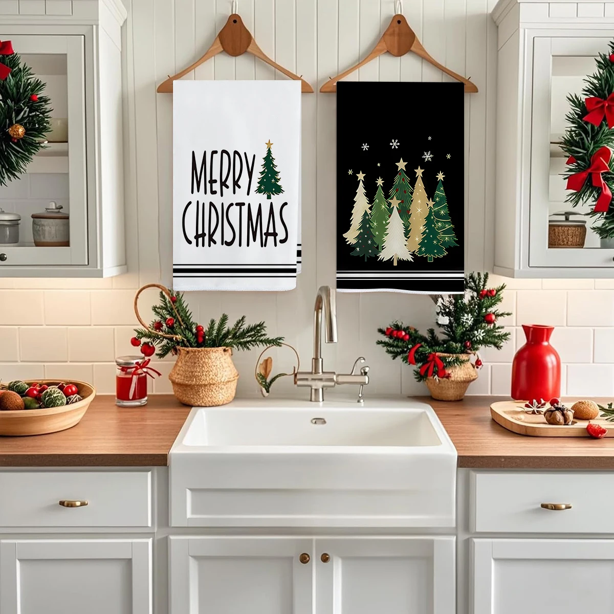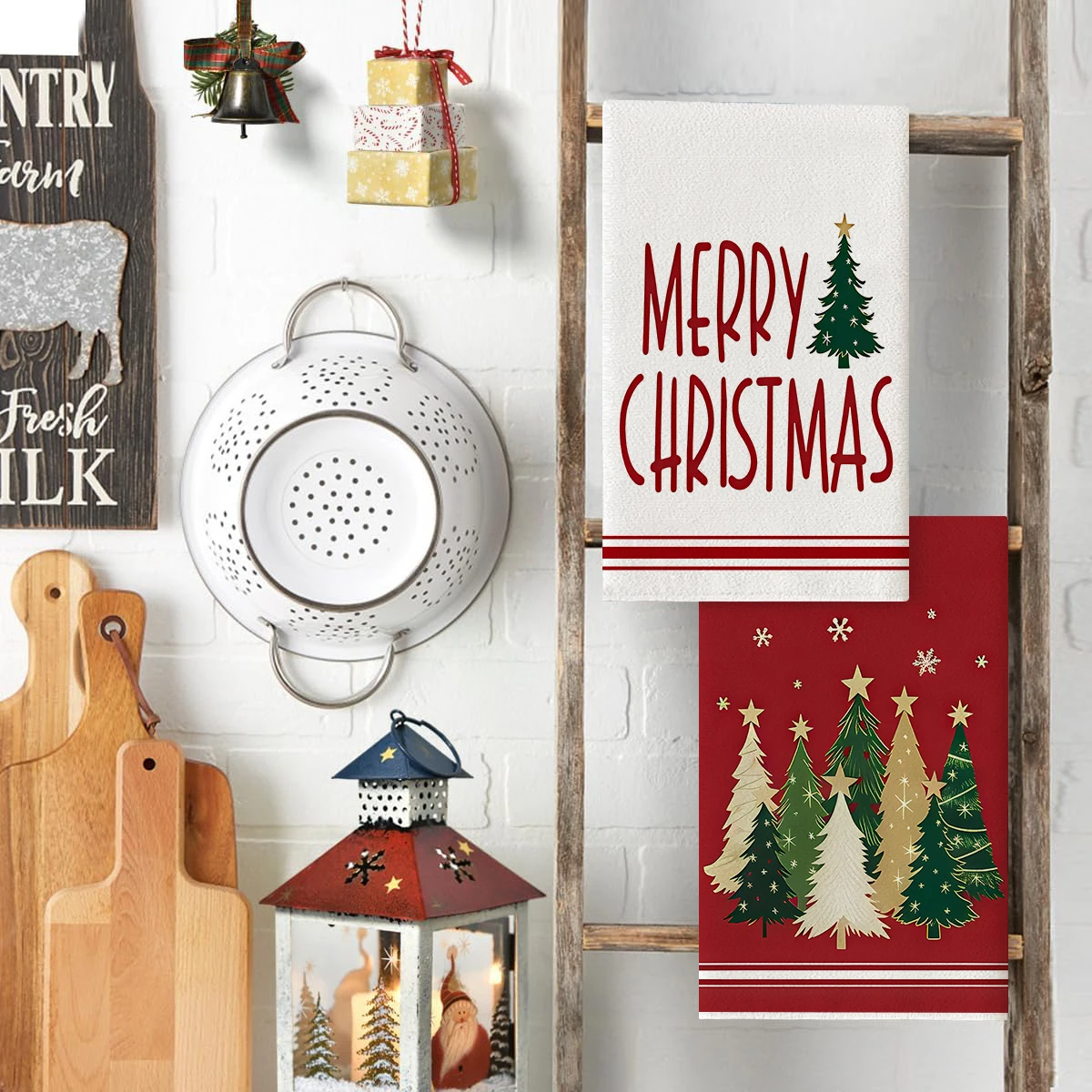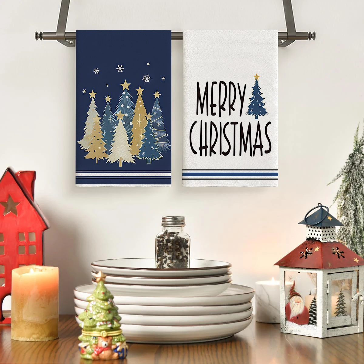 2 Christmas pink Christmas tree kitchen towels, available in various colors and styles, multifunctional towels for Christmas dec