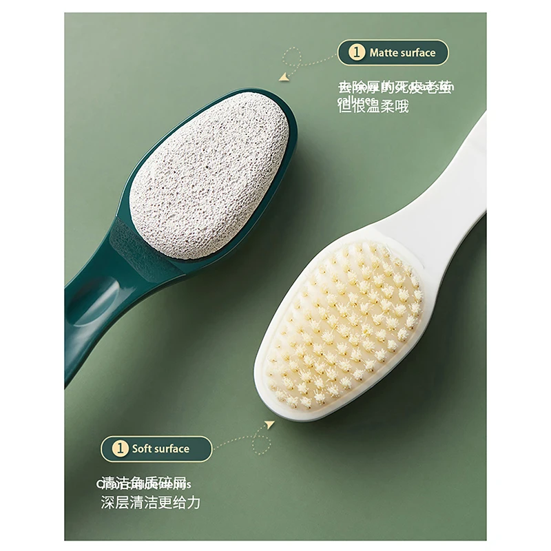 2 In 1 Pumice Stone Foot Brush Scrubber With Handle Feet Exfoliating Dead Skin Remover Massage Brush Pedicure Tool Unisex