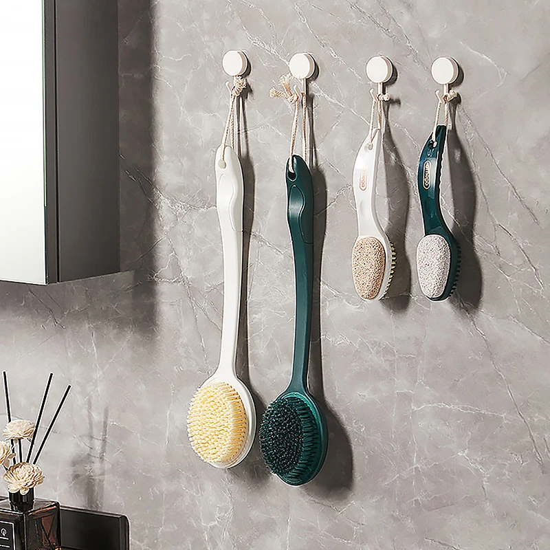 4. Use the foot brush on wet or dry feet. Hang the tool using the attached loop to dry when done. Doing so airs it out in order to prevent bacteria buildup.