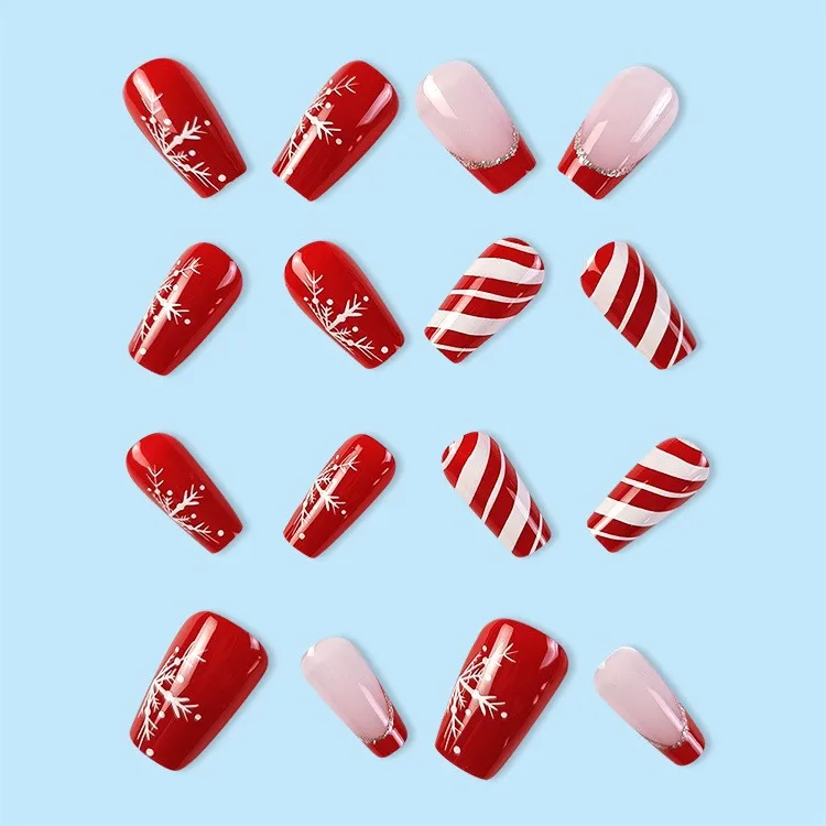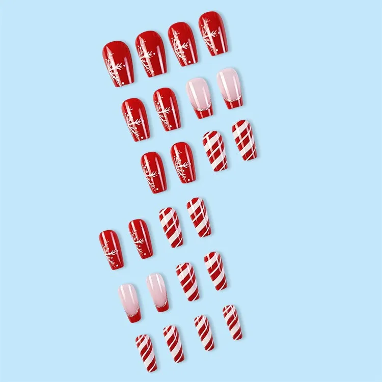 24Pcs Christmas Ballet False Nail Manicure Acrylic Artificial Full Nail Tips Press On Nails Xmas Snowflakes Ballerina Fake Nails