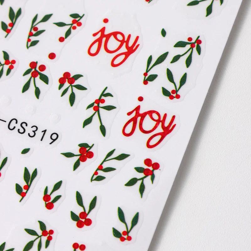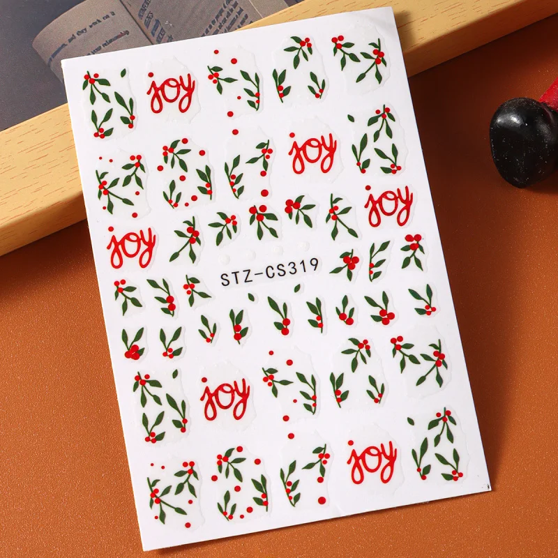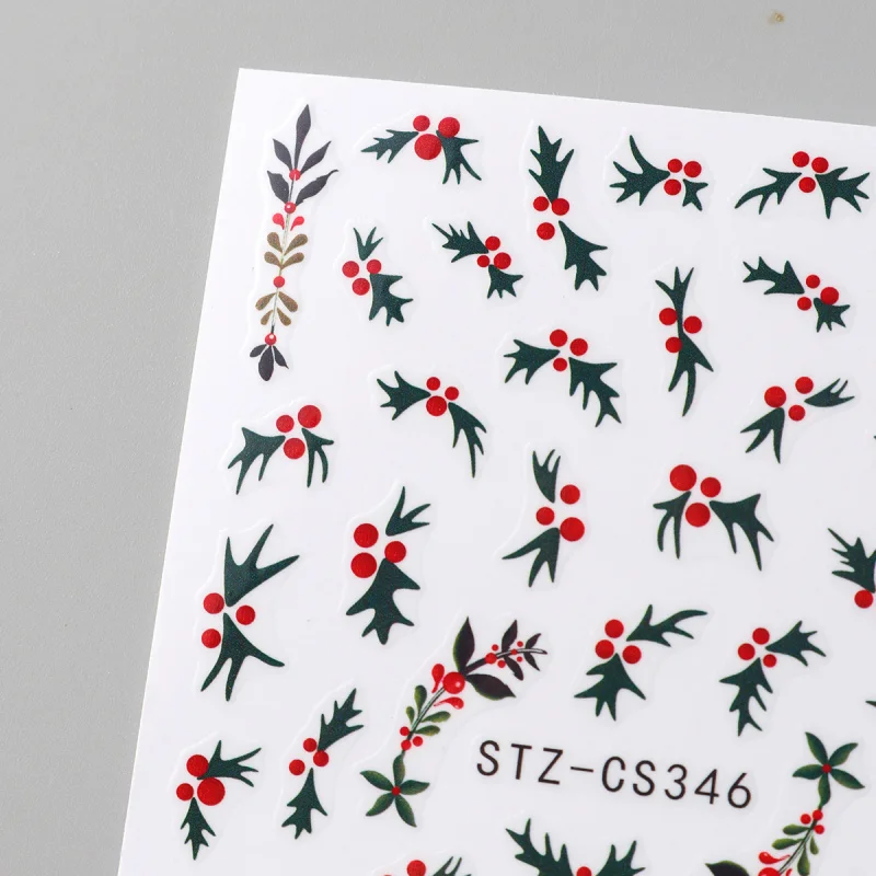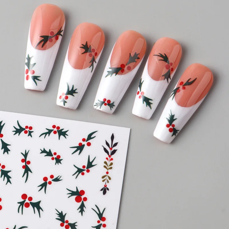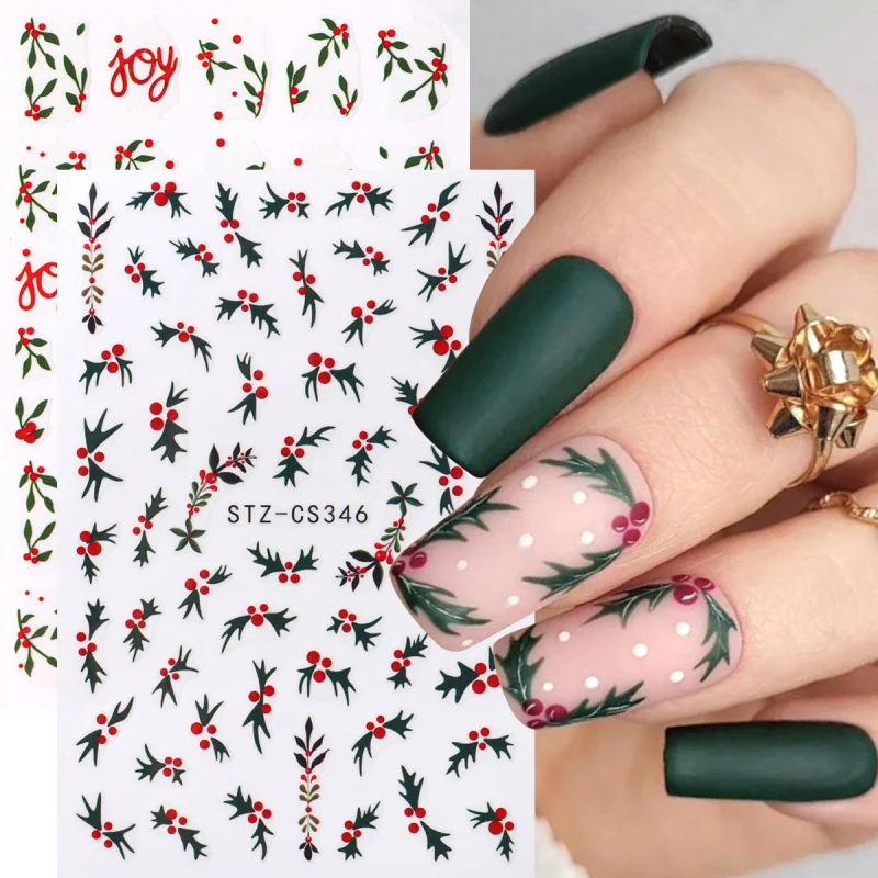 2pcs Christmas Holly Nail Art Stickers Xmas Flower Leaf Designs Jolly New Year Winter Adhesive Decals Sliders Decoration