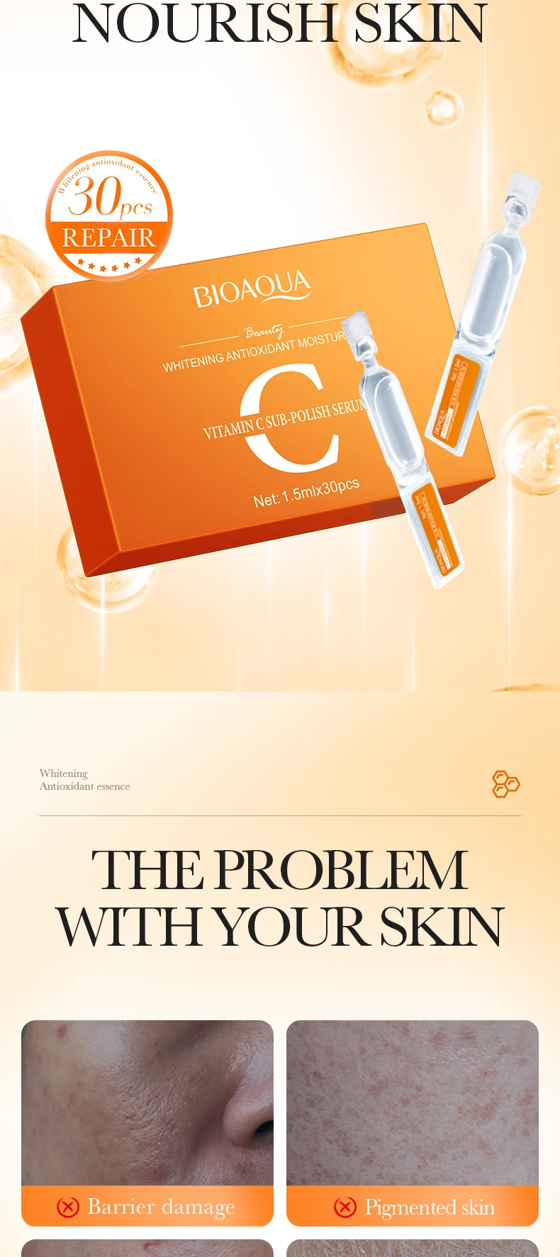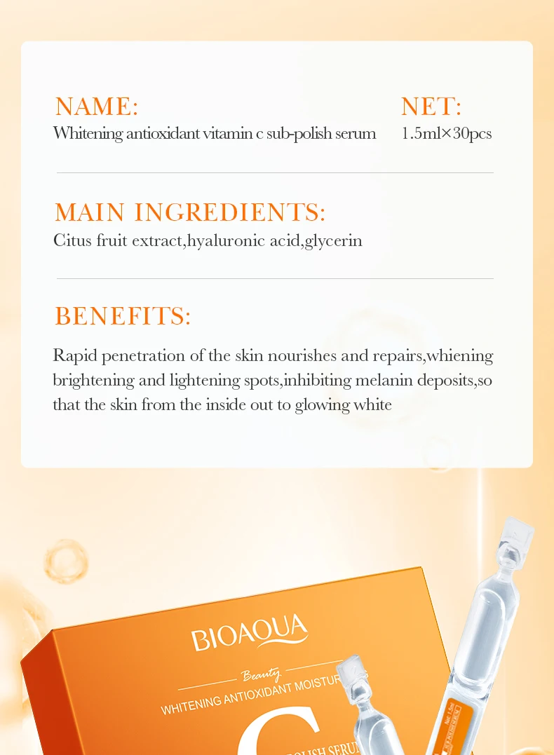 30pcs/box BIOAQUA Vitamin C Whitening Face Serum Sets Face Anti Wrinkles Anti-aging Moisturizing Facial Essence Kit Skin Care