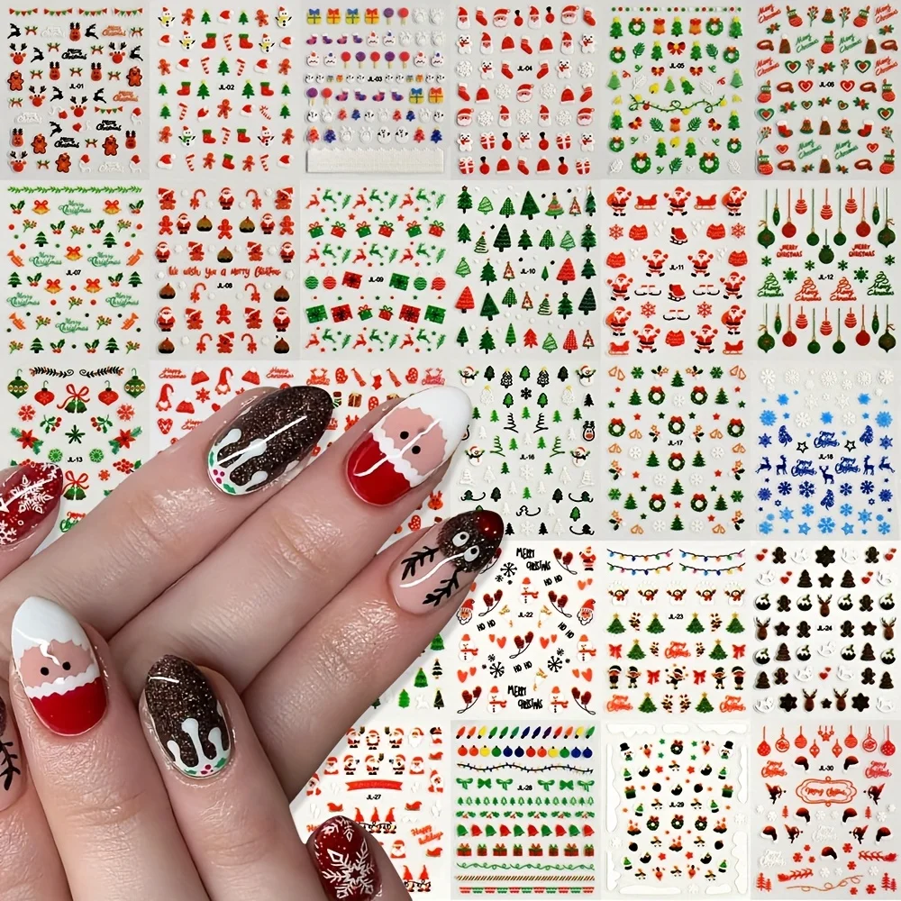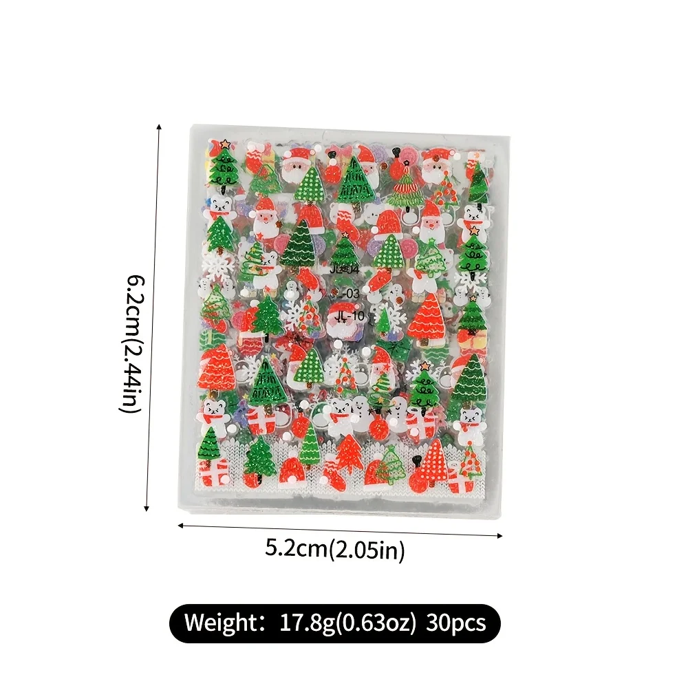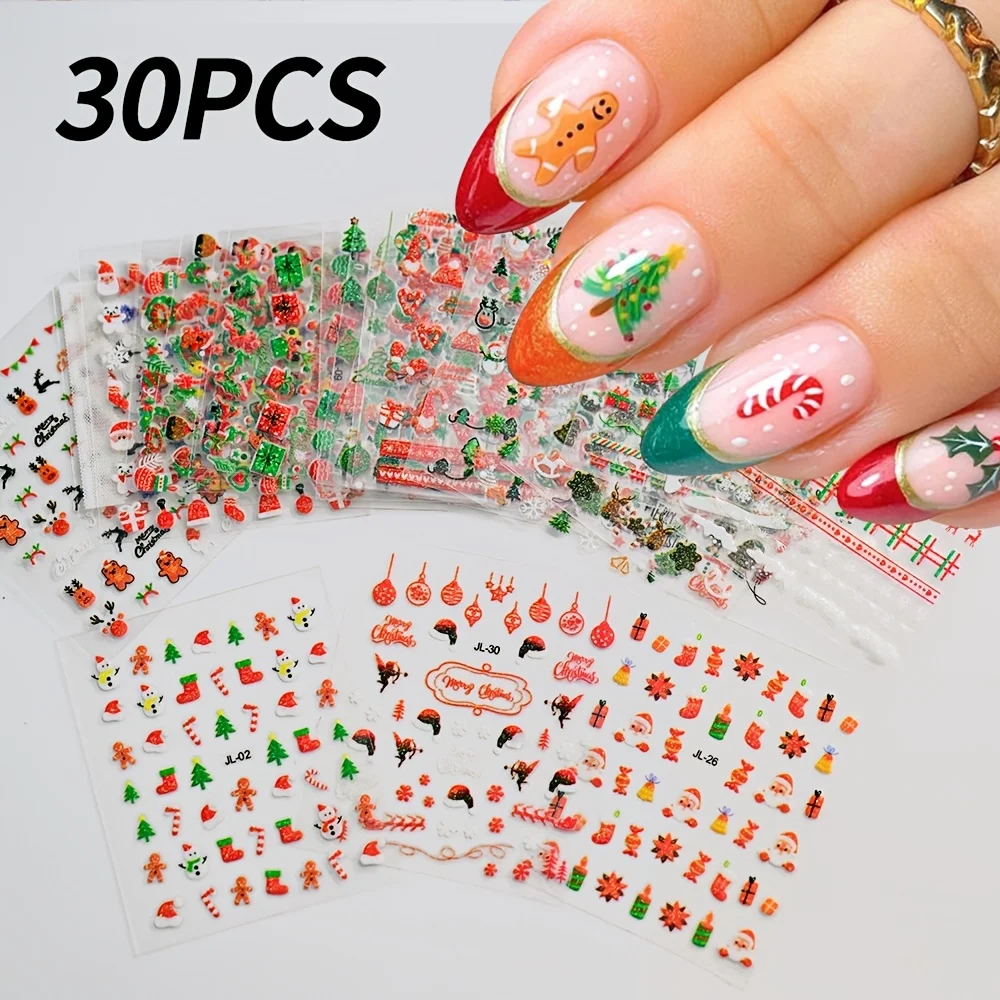 30pcs Festive Christmas Nail Art Stickers Set Self-Adhesive,Disposable Decals Reindeer Xmas Tree Designs Cute Semi-Matte Finish