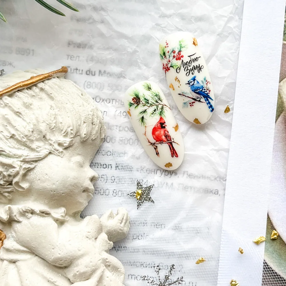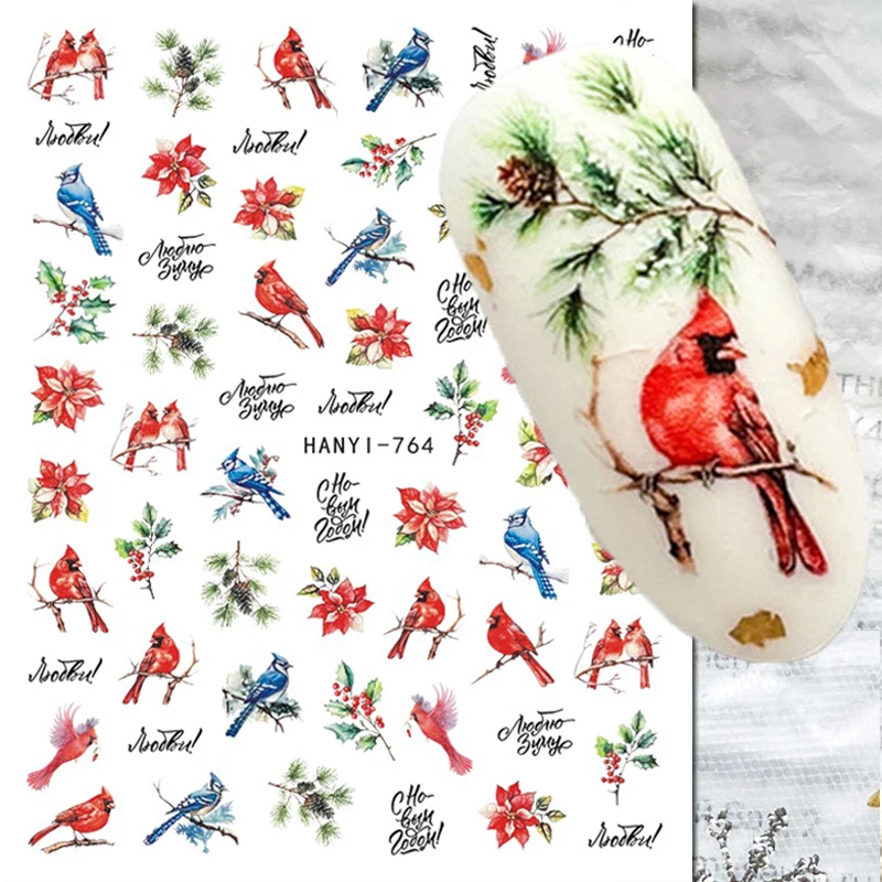 3d Nail Art Decals Autumn Winter Xmas Red Fruit Blue Bird Pinecone Tree Flowers Nail Stickers Decoration For Nail Tips Beauty