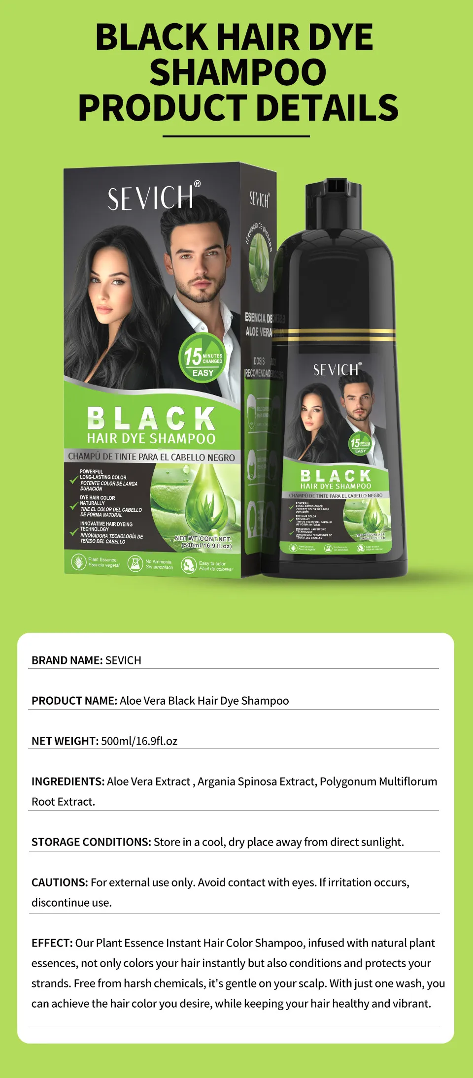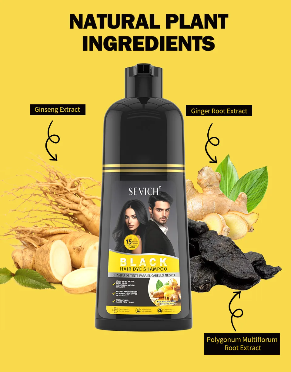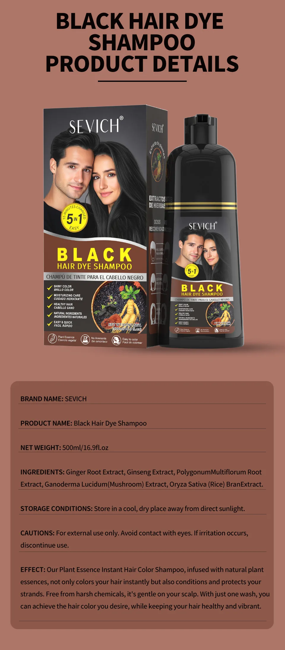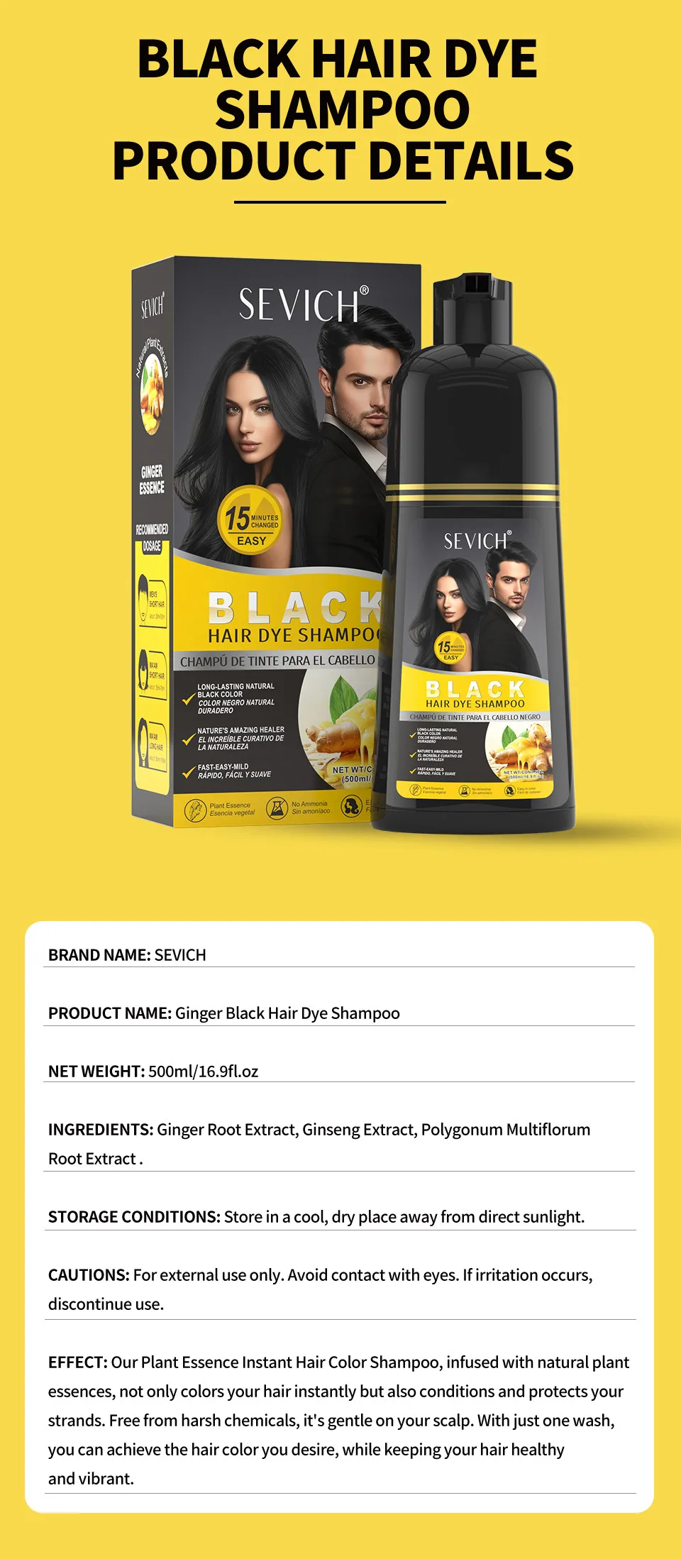 500ml Black Dyed Shampoo Instant Dye Covers Natural Gray Hair Shampoo Black Hair Dye Herbal Ginseng Ginger White Hair Dyed Black