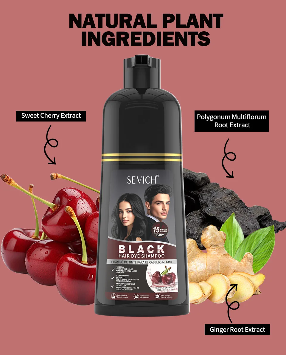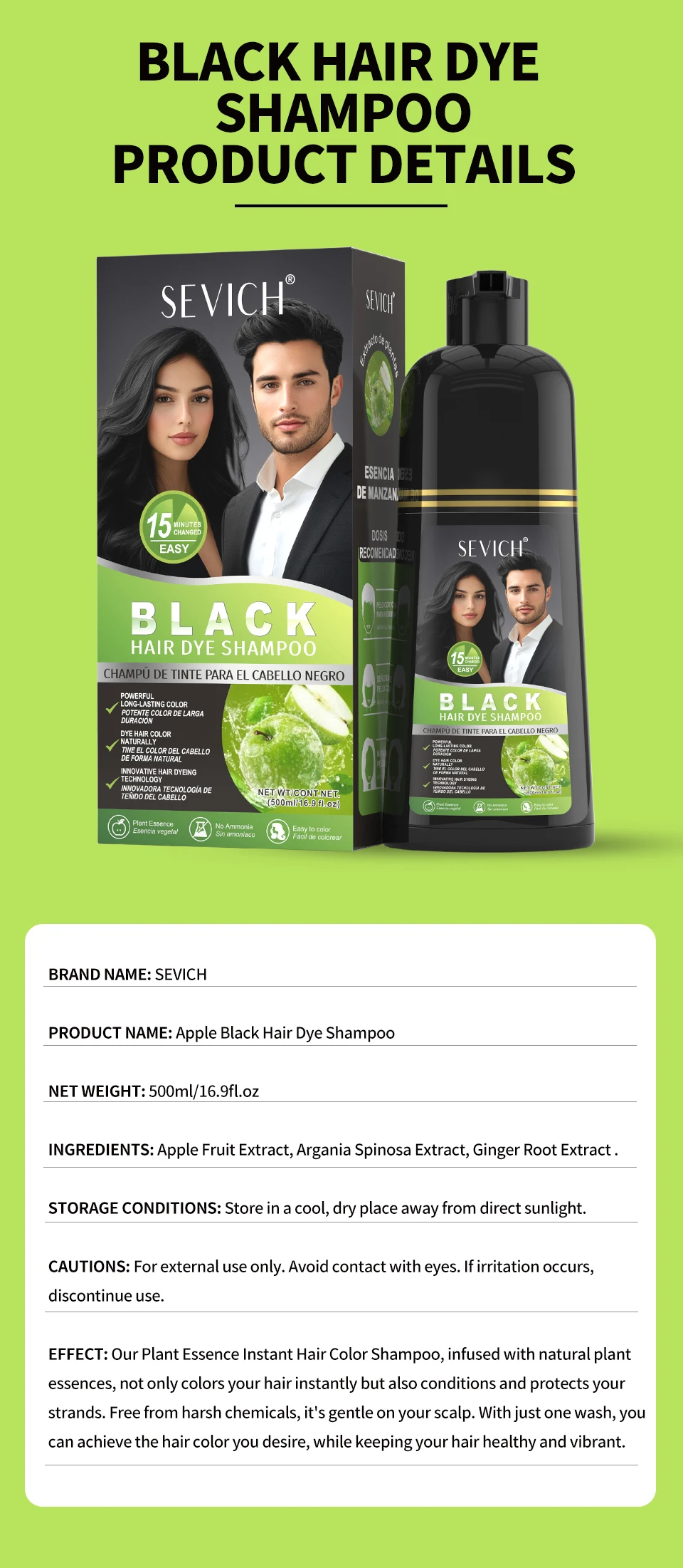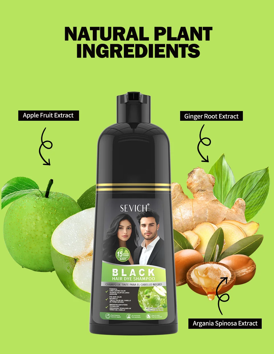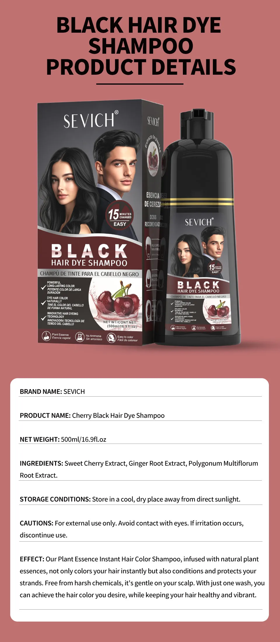 500ml Black Dyed Shampoo Instant Dye Covers Natural Gray Hair Shampoo Black Hair Dye Herbal Ginseng Ginger White Hair Dyed Black