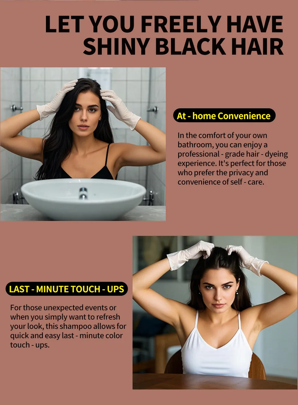 * Wondrous instant hair dye shampoo will only take a few minutes to give you a lustrous black hair color that will last up to 30 days.