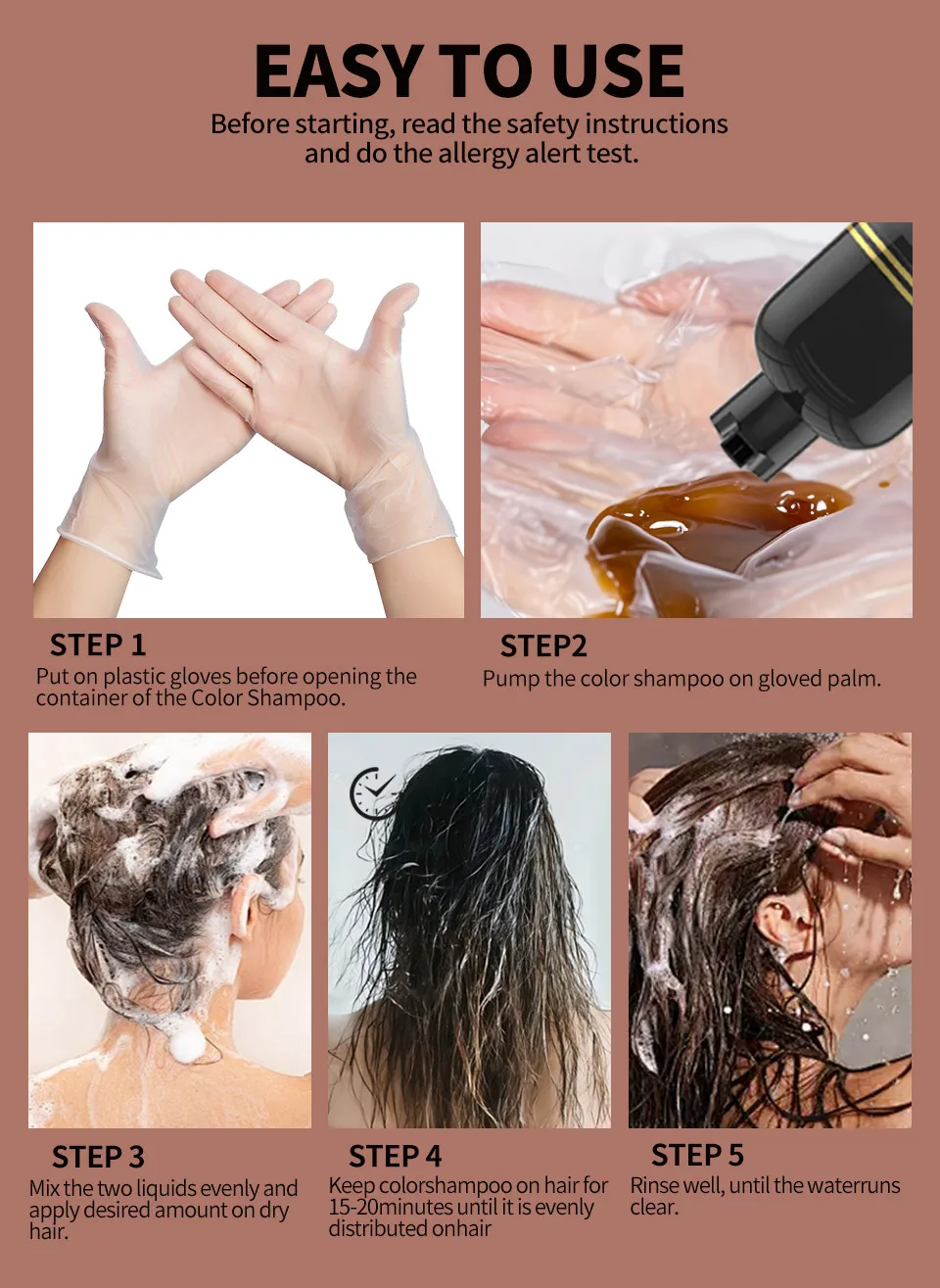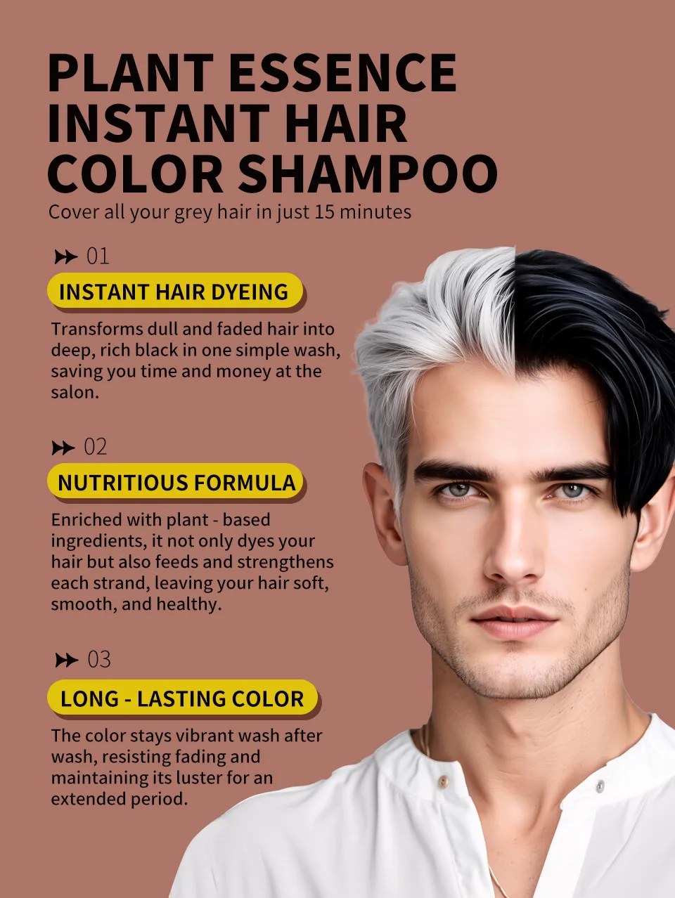 * Counter the signs of age and forget white and grey hair. Simply apply a dose of this great instant hair dye shampoo, you instantly feel young.