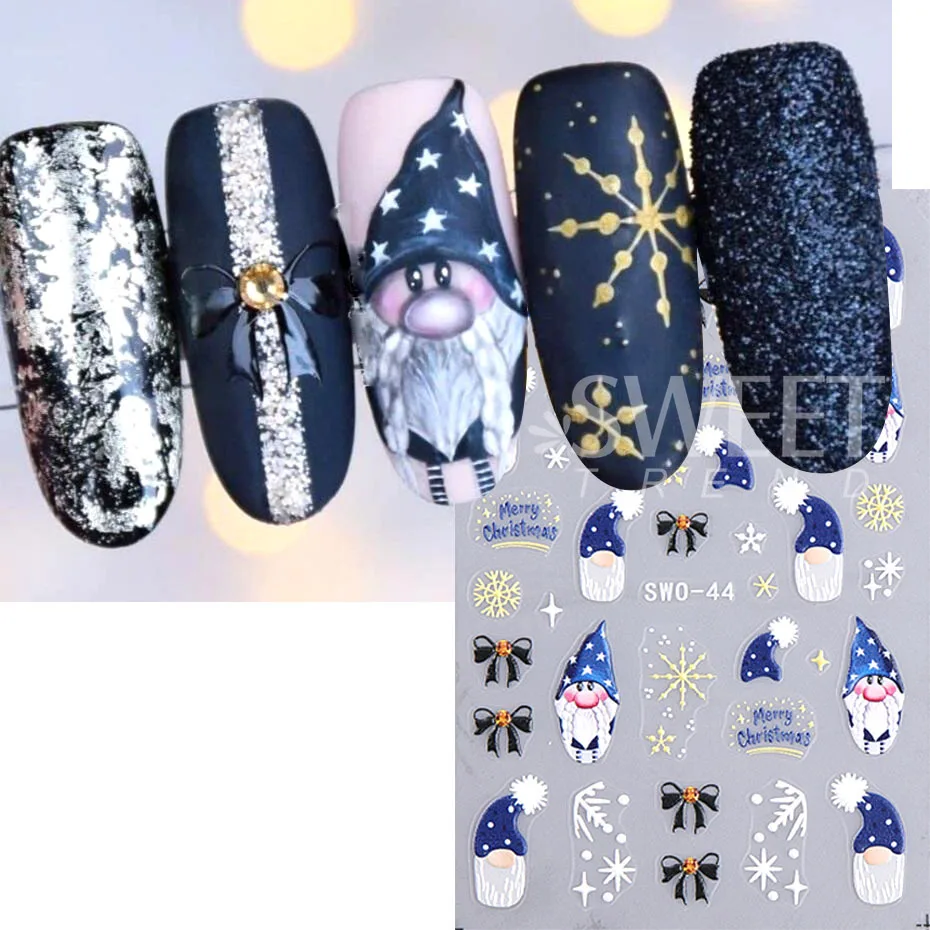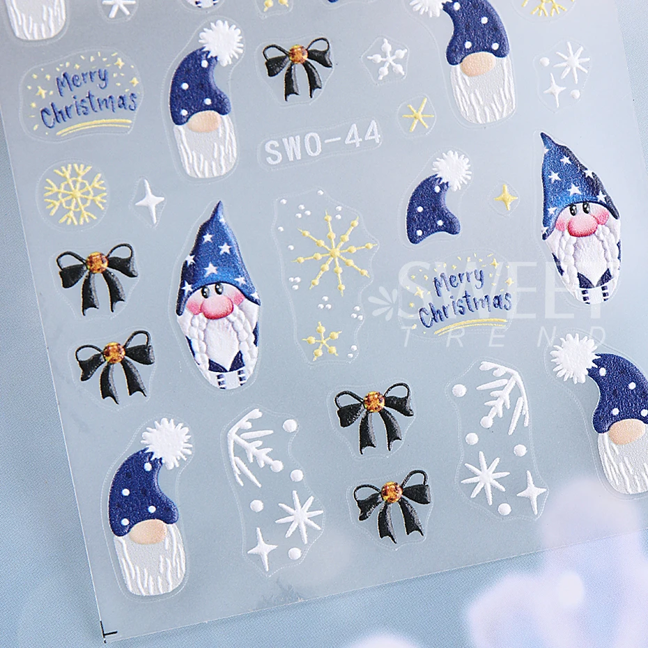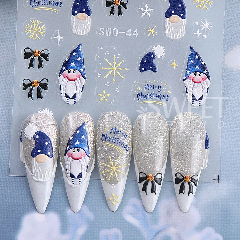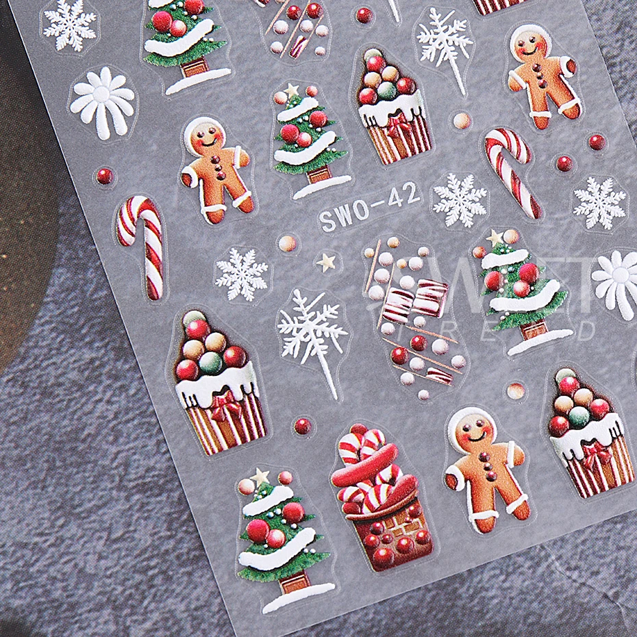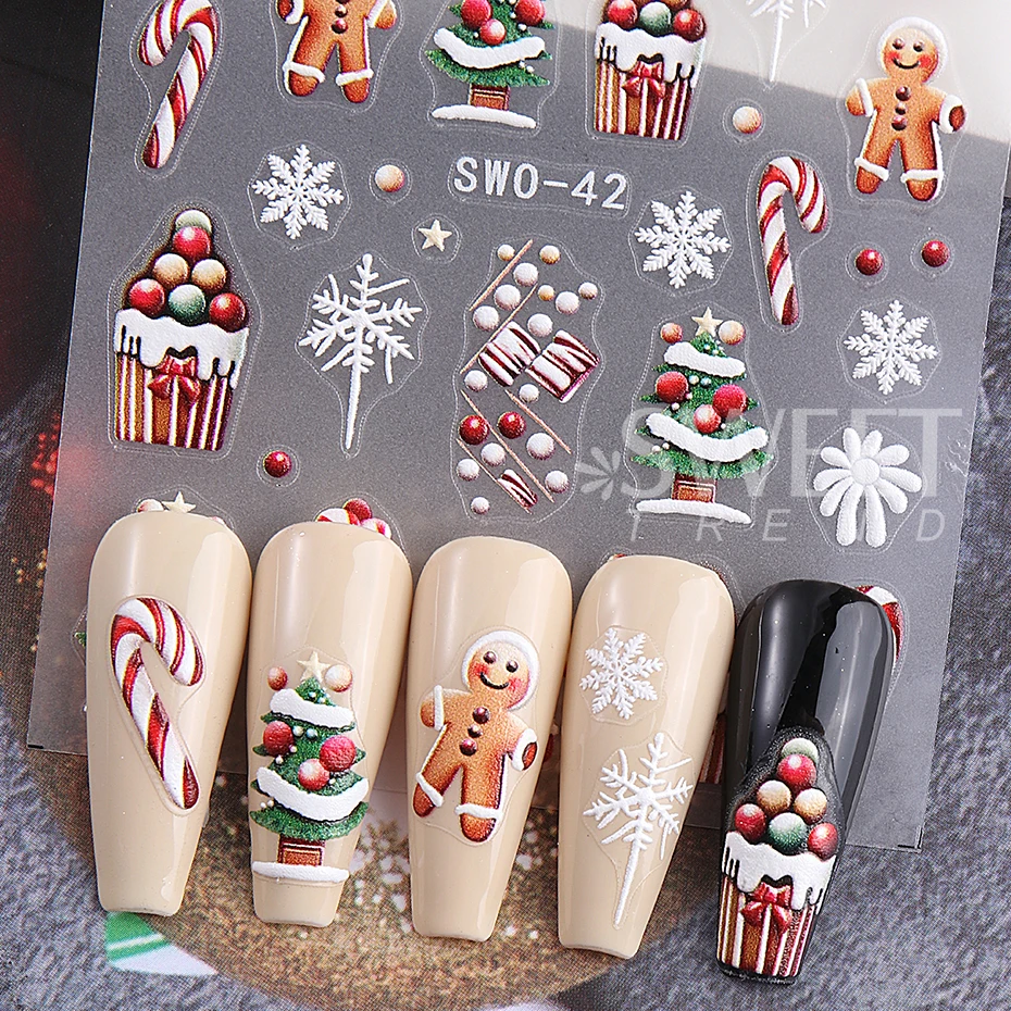 5D Embossed Christmas Nail Stickers Gingerbread Man Snowflake Snowman Penguin Nail Decal Autumn Winter Nail Supplies Decoration