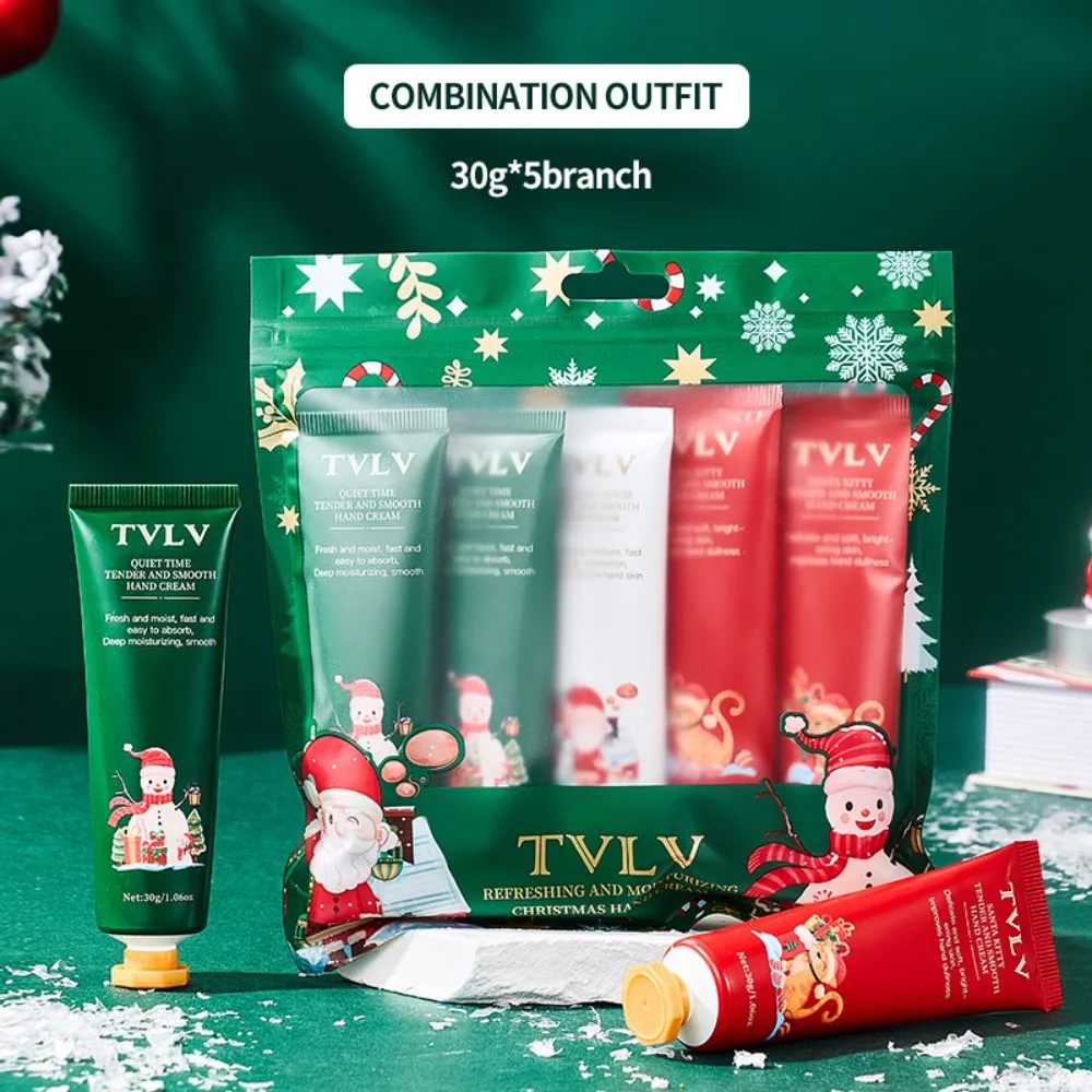 5PCS Christmas Gift Hand Cream Set Cream Texture Hand Cream Travel Bag Durable Moisturizing Cream Women's Gift