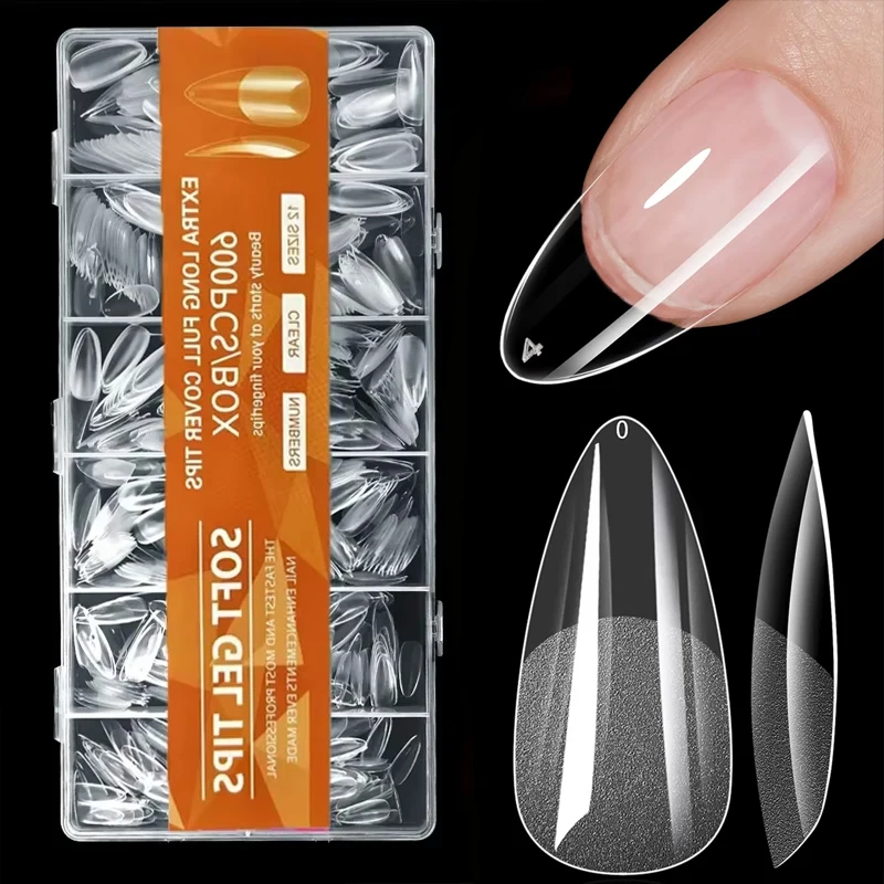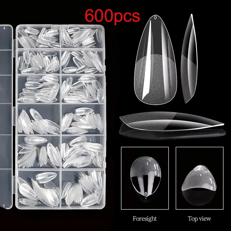 600Pcs Short Almond Nail Tips Soft Gel Nail Tips Full Cover False Nail Tips For Acrylic Nails Manicure Salon Home Press On Nails