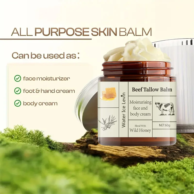 60g Beef Fat Cream Deep Moisturizing Brightening Wrinkle Removal Grass-Fed Butter Wild Honey Facial Body Lotion Skin Care Rich in Vitamins
