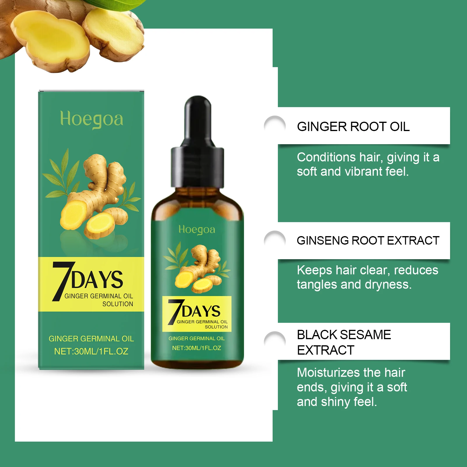 2. Ginger extract nourishes hair follicles, restores scalp health, repairs damaged hair follicles, and provides hair with daily nutrients.
