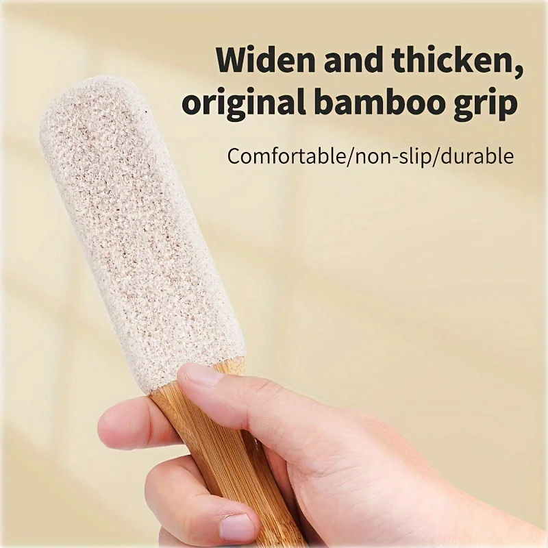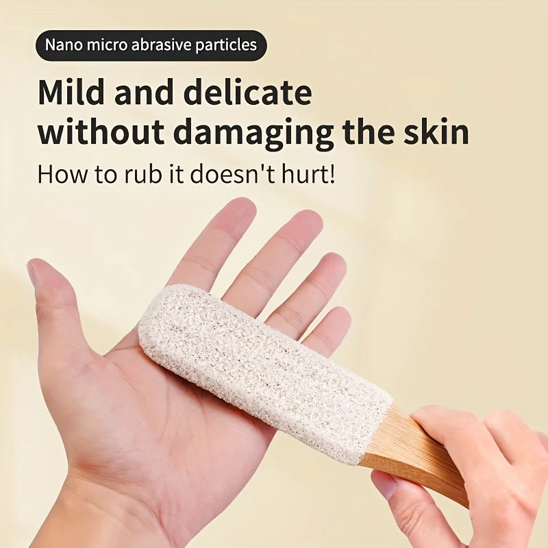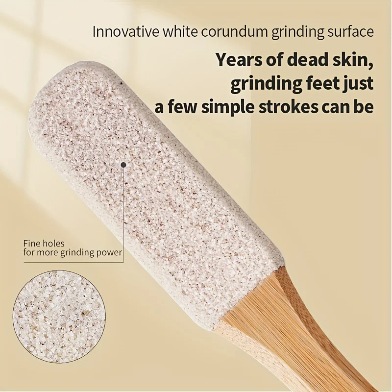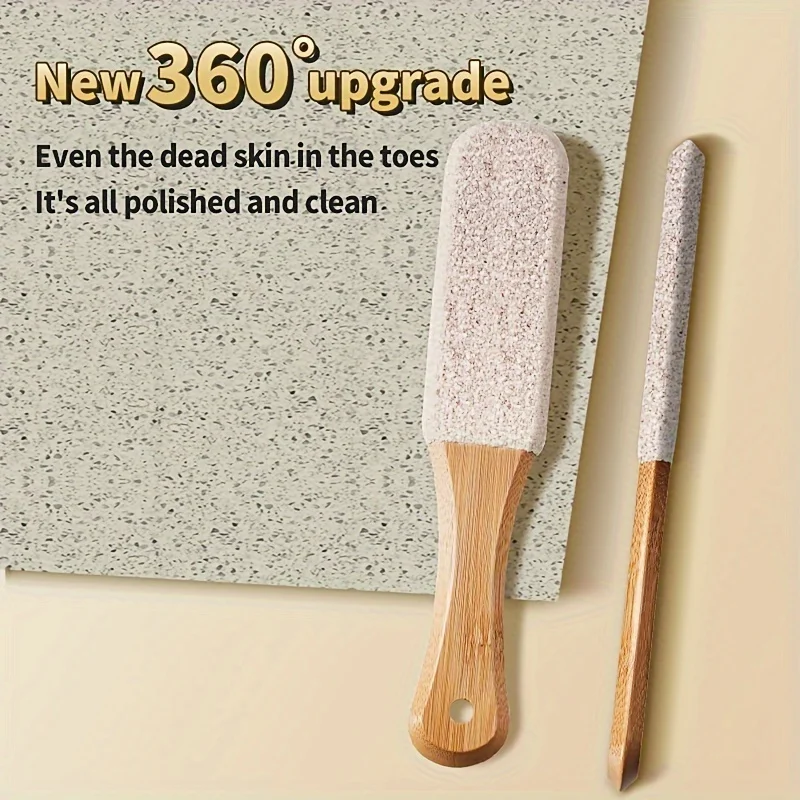 Bamboo Handle Foot File 360° Natural Pumice Stone Exfoliator Professional Pedicure Tool for Callus Removal Dead Skin Foot Scrubb