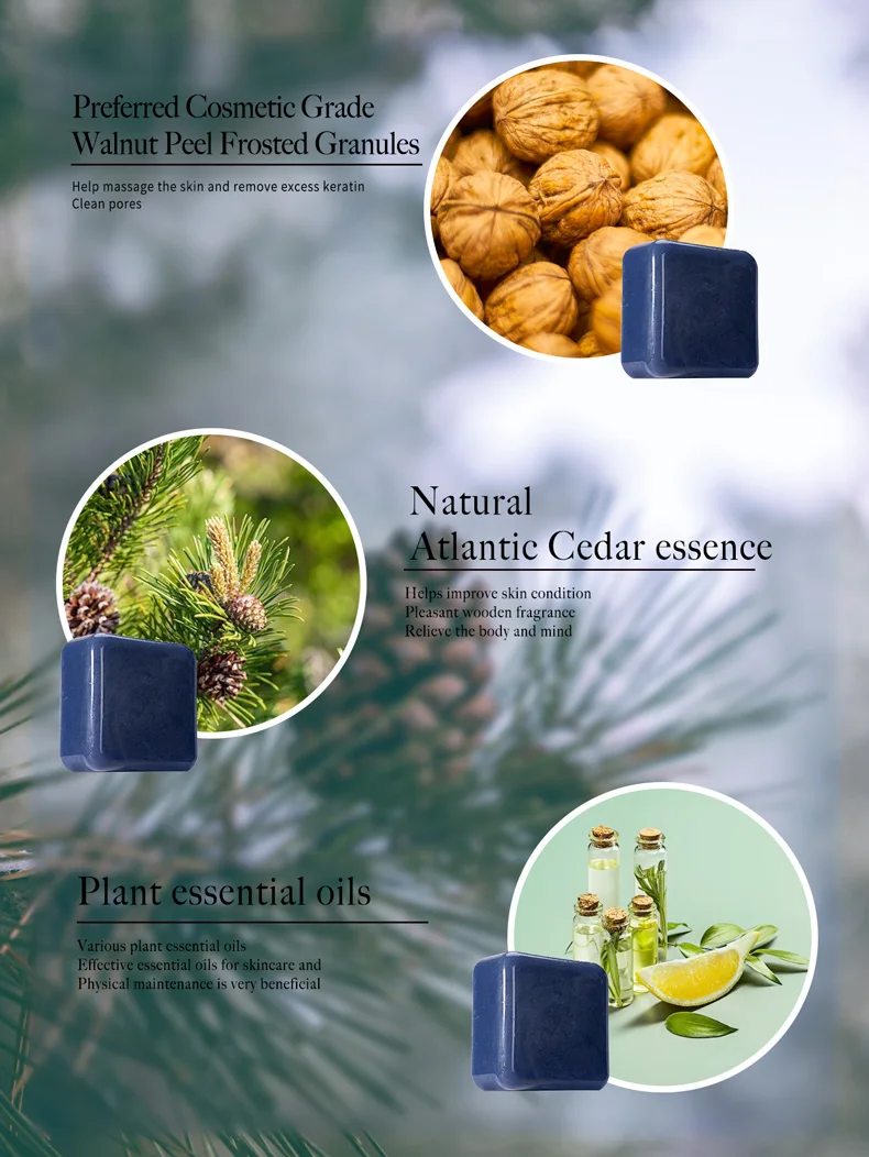 Cedrus Atlantica Scrub Soap for Men Anti-Acne Herbal Olive Oil Face Wash with Floral Pattern for Adults