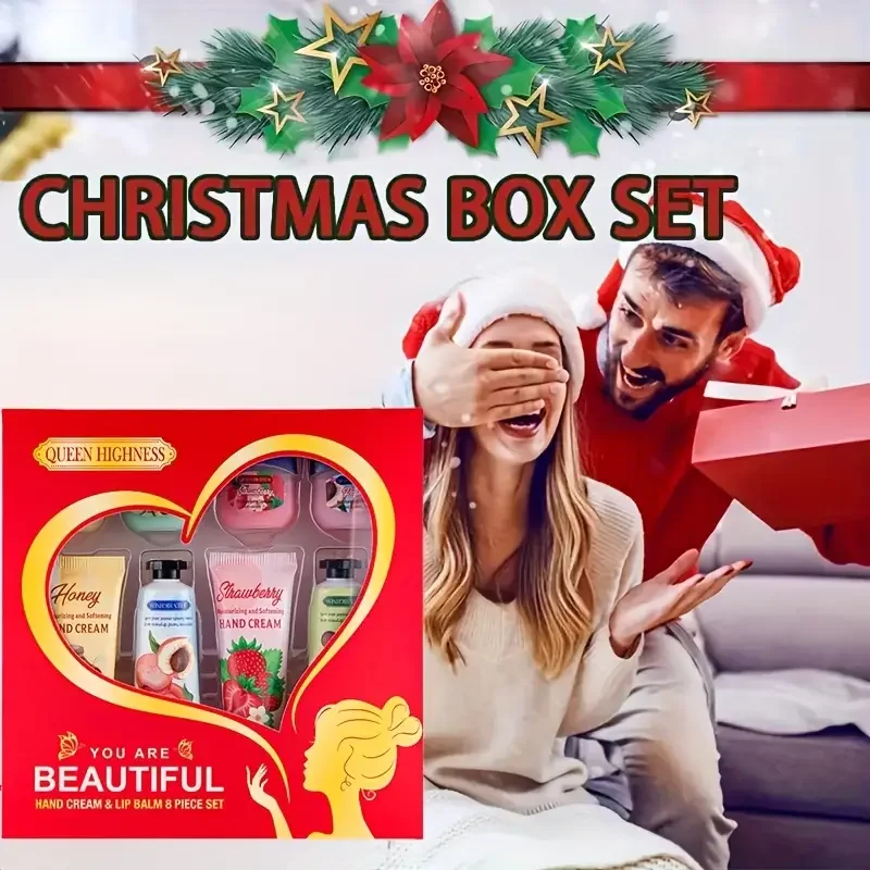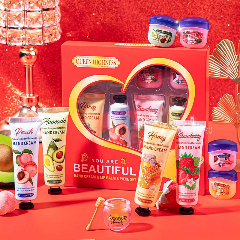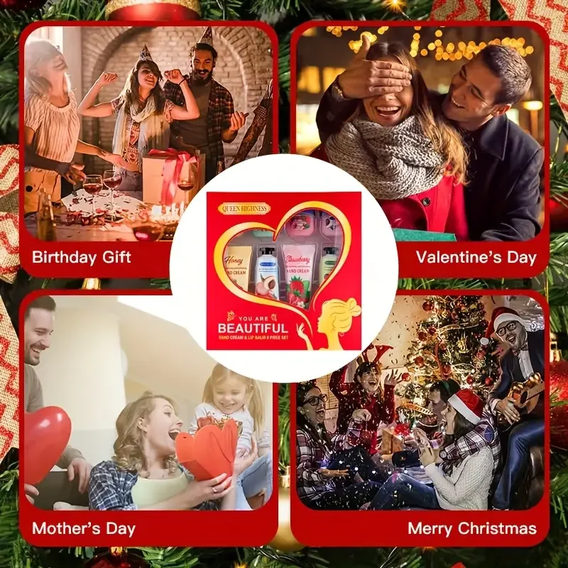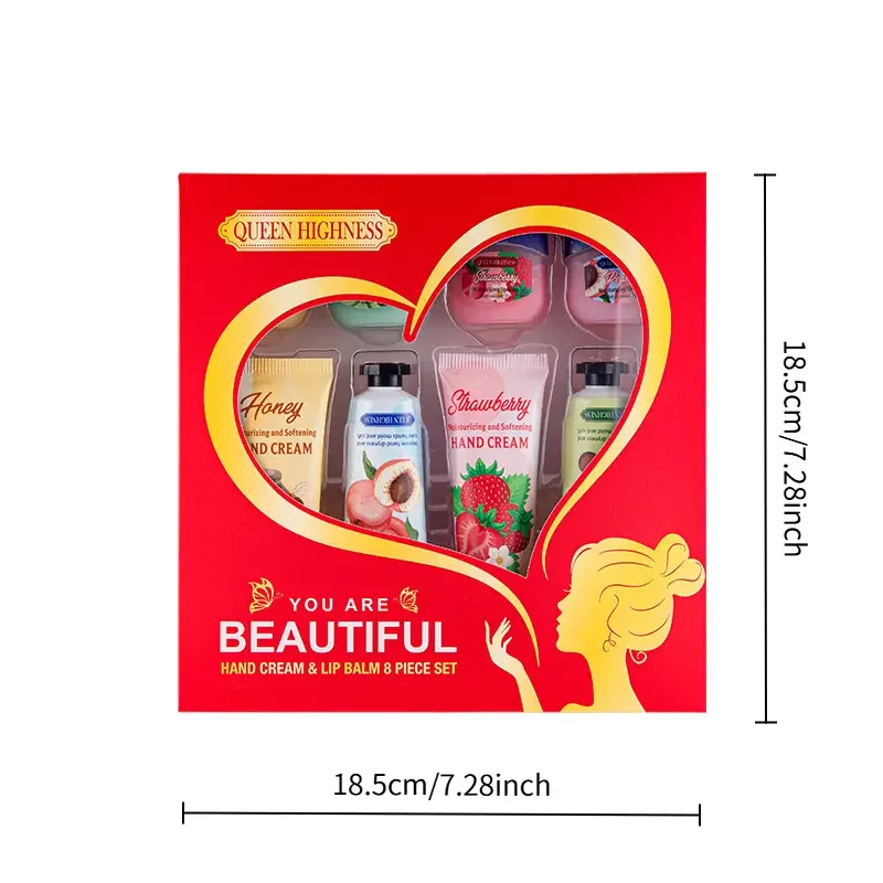 Christmas gift 8pcs set lip balm & hand cream set, Cream texture, Anti-cracking moisturizing, Valentine's Day gift for women