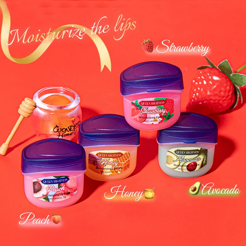 The lip balm is crafted with a blend of natural moisturizing agents to soothe and protect dry, chapped lips. Infused with the delicious scents of honey, peach, avocado, and strawberry, each balm offers a burst of hydration while leaving a subtle, pleasant fragrance. The creamy texture glides on smoothly, providing instant relief and long-lasting comfort.