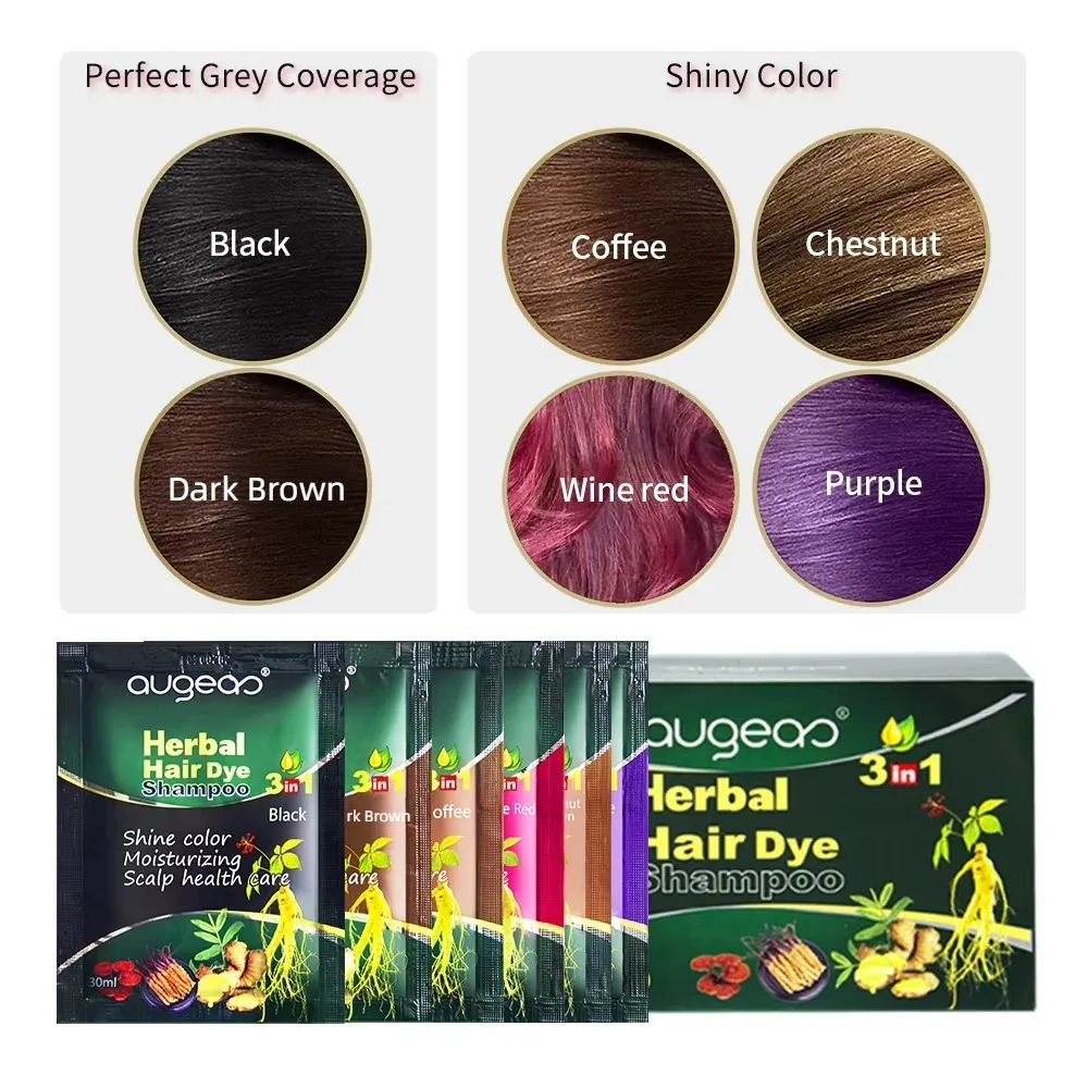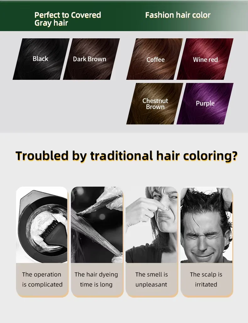 Natural hair dye formula, 100% natural hair dye, gives users a completely different hair dyeing experience. The special plant essence and packaging technology can satisfy people suffering from gray hair, and they can operate at home without going to a hair salon. Plant formula, which helps to care for hair and protect scalp.