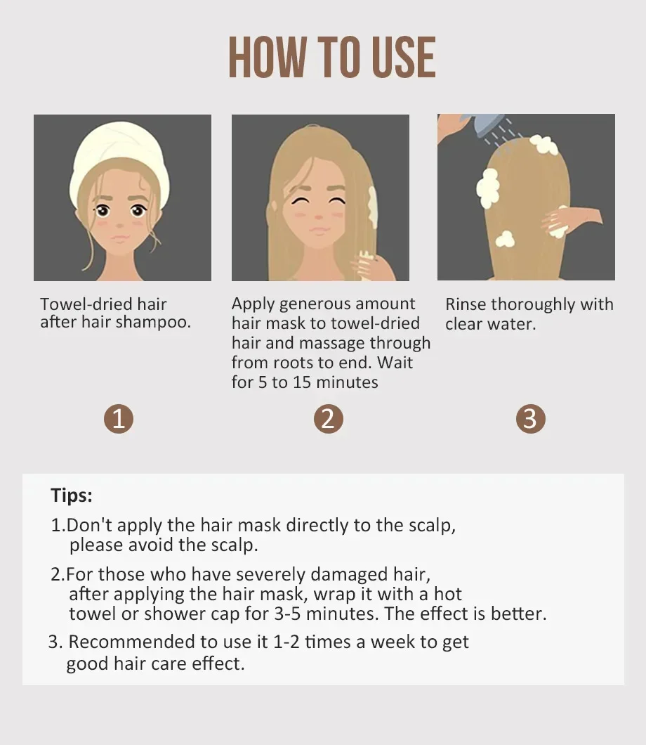 Features: Based on the studv of more than hair situation of 10,000consumers, develop this care products with high technology--- importedraw materials combined with fine molecular technology, 5 seconds to make your hair smooth and soft.