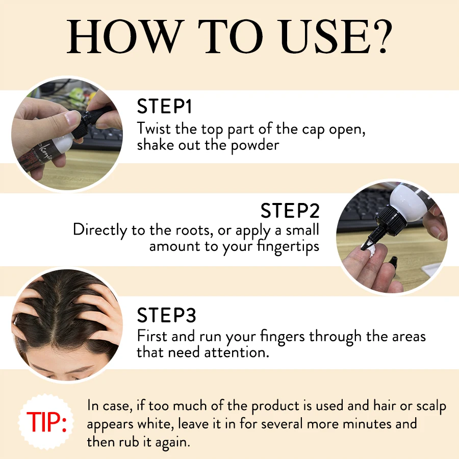 First and run your fingers through the areas that need attention.In case, if too much of the product is used and hair or scalp.