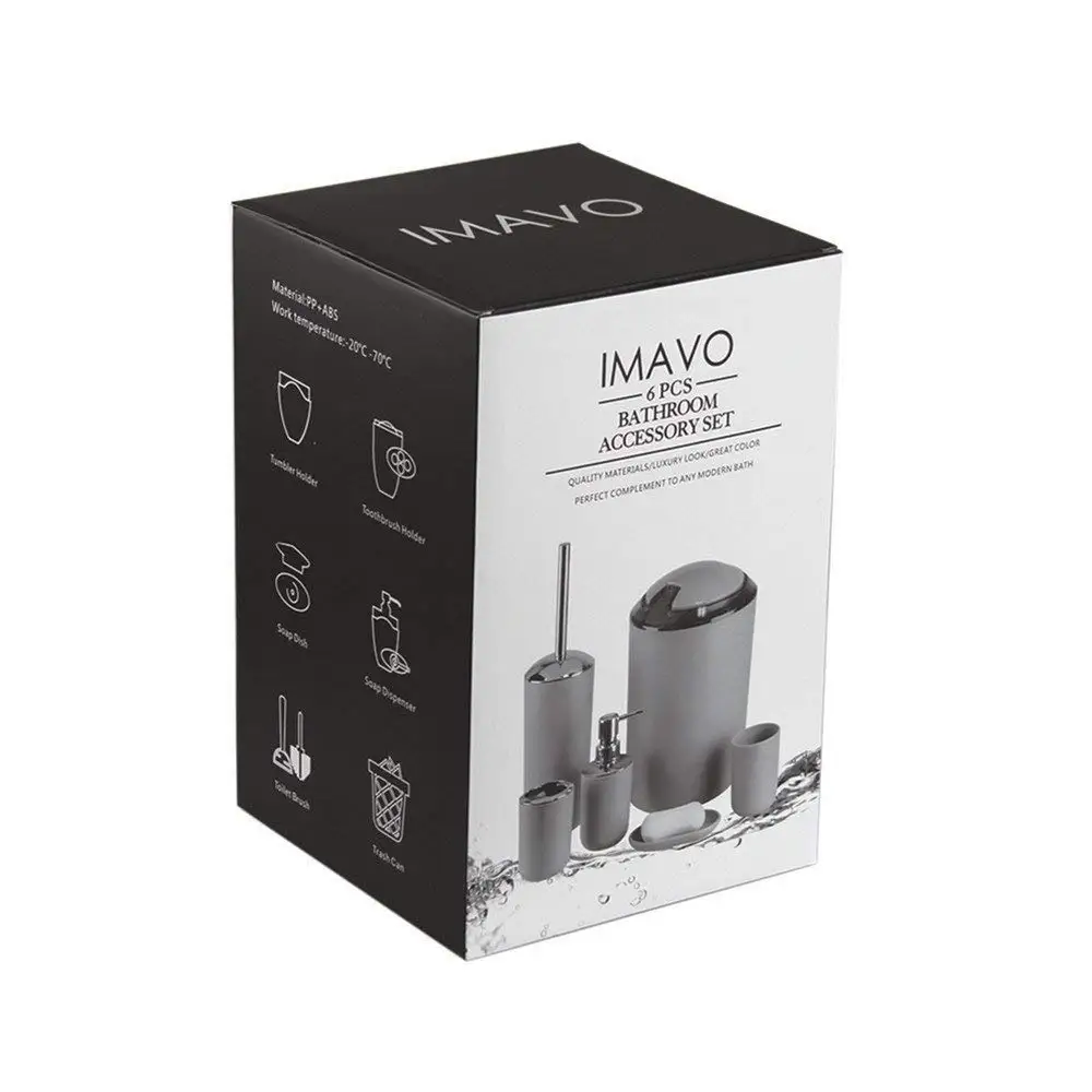 【THE SET INCLUDES】: 1 Mouthwash cup, 1 Toothbrush holder, 1 Lotion dispenser, 1 Doap dish, 1 Trash can and 1 Toilet brush with bracket.