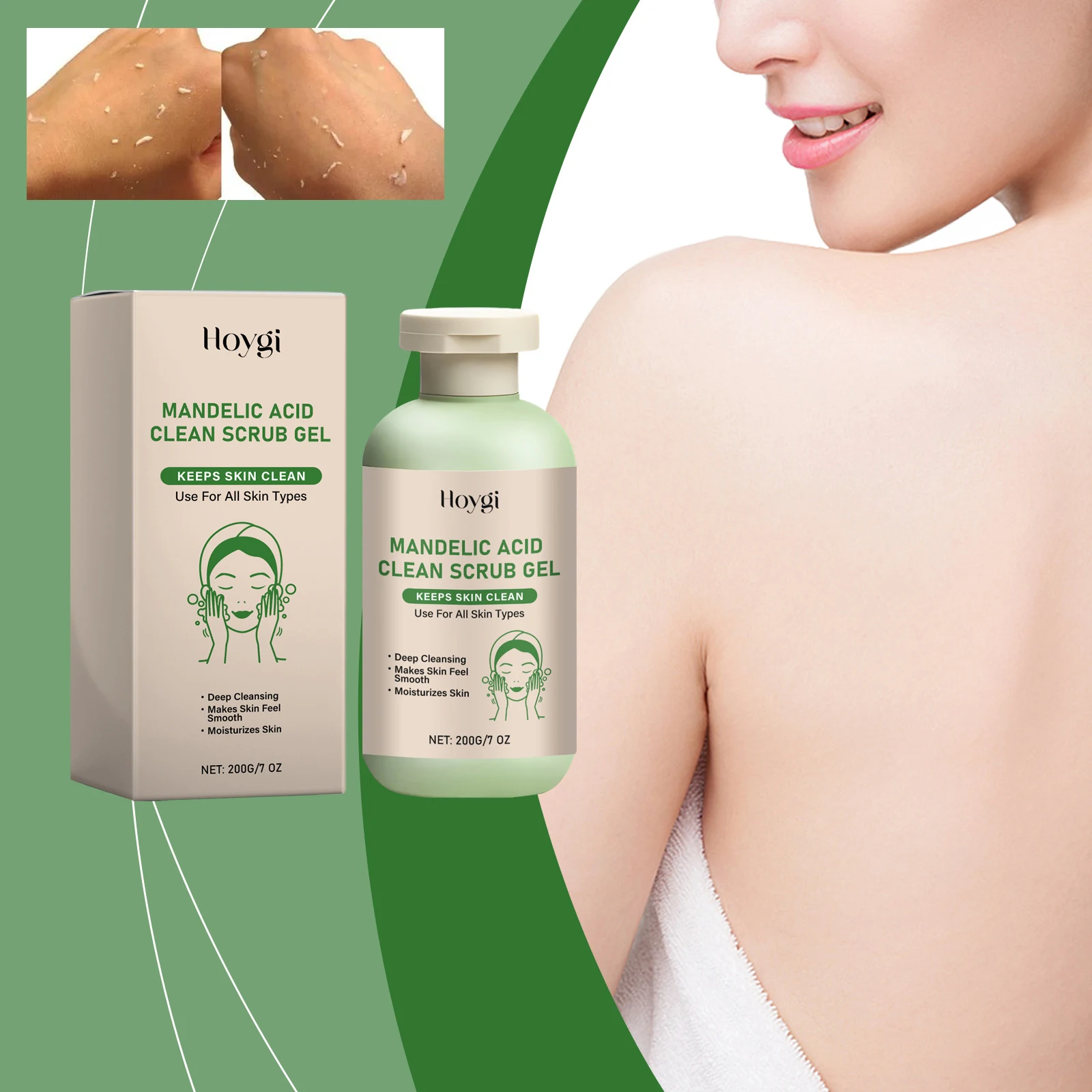 HOYGI Mandelic Acid Body Scrub Gel Gentle Cleansing Pores Exfoliating Dead Skin Remover Smoothing Reduce Dryness Deep Cleansing Scrub 200g