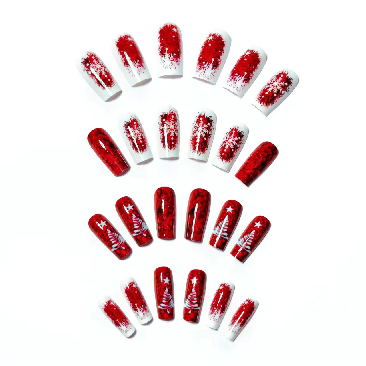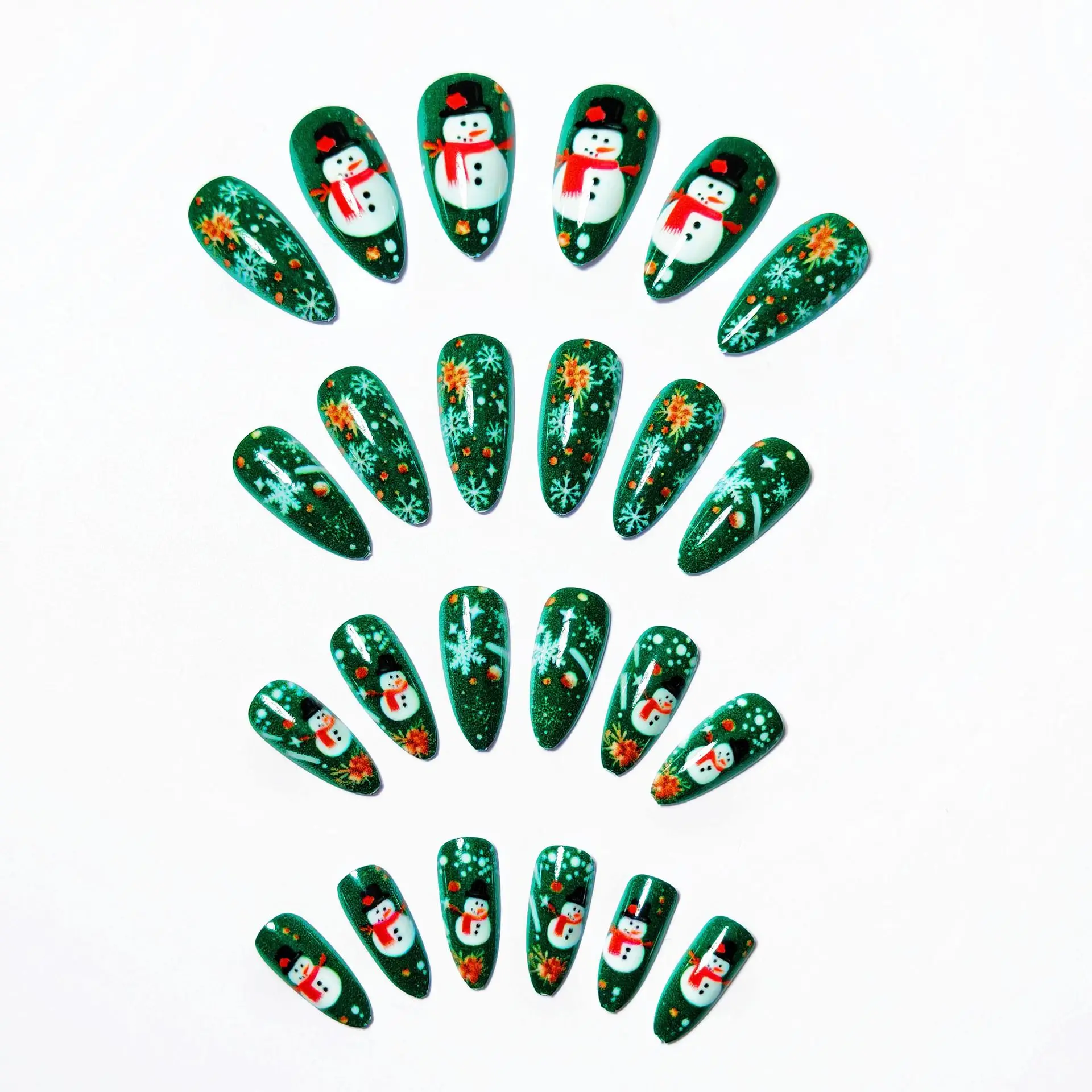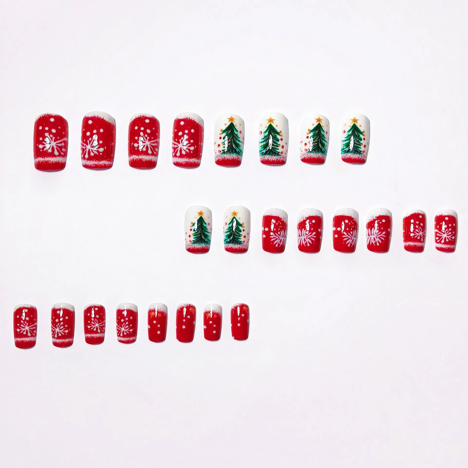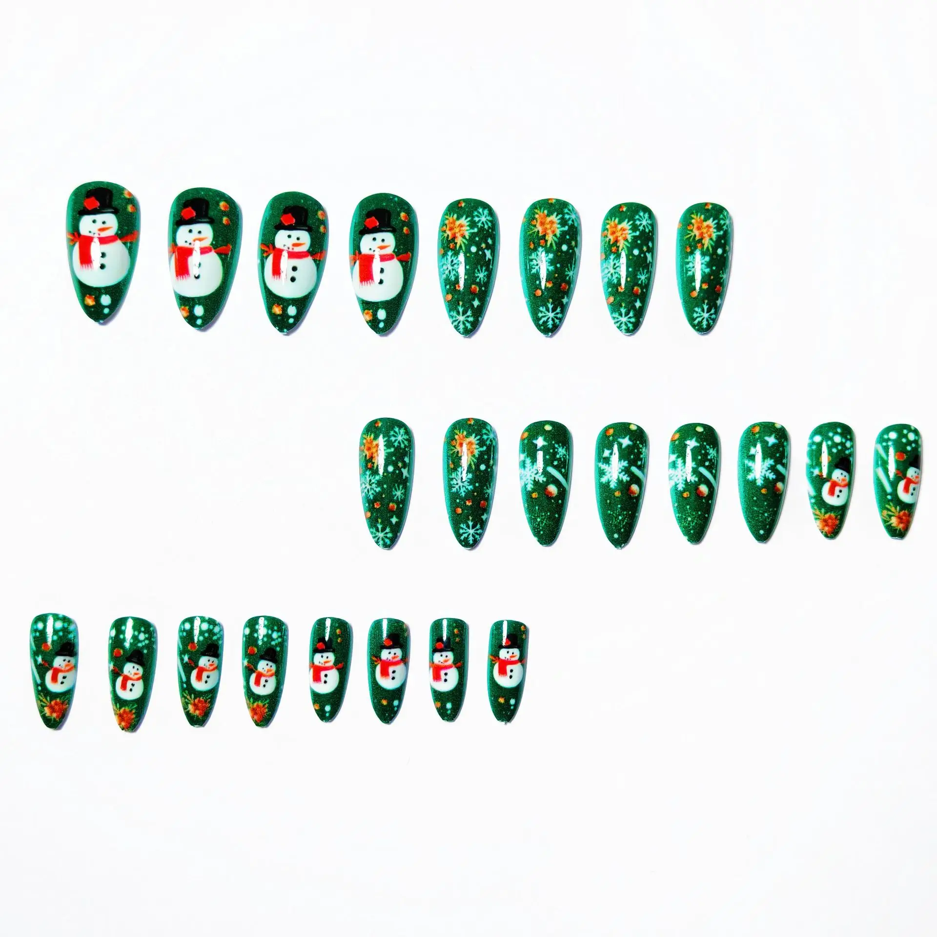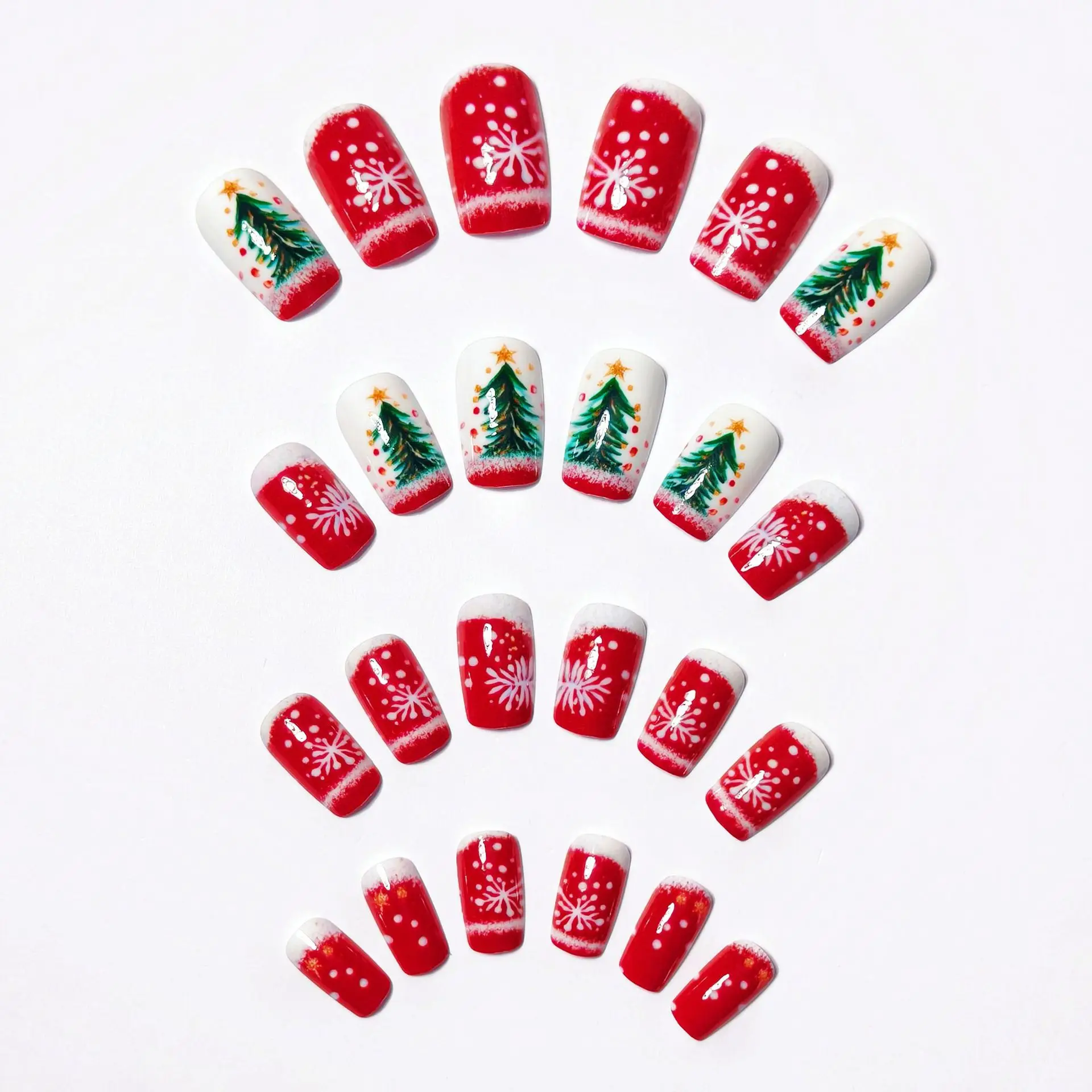 Medium long fake nails for Chirstmas party Square almond tips christmas tree snowflake gift snowman press on false nail art set