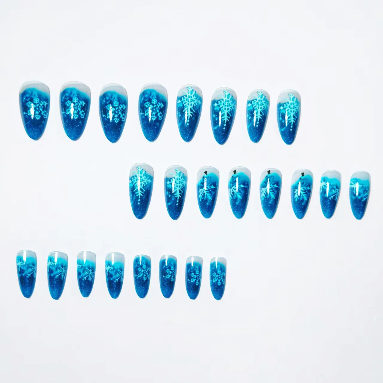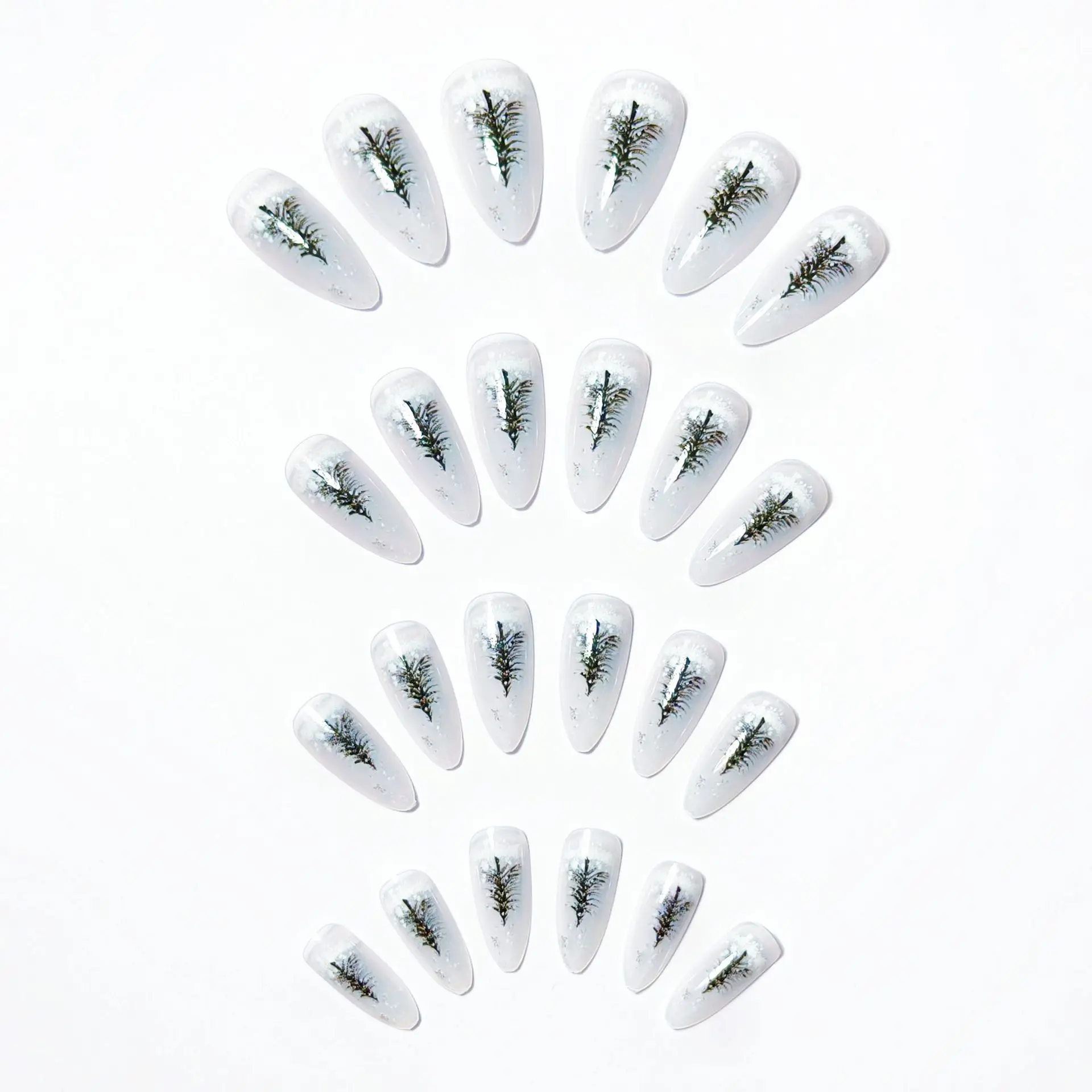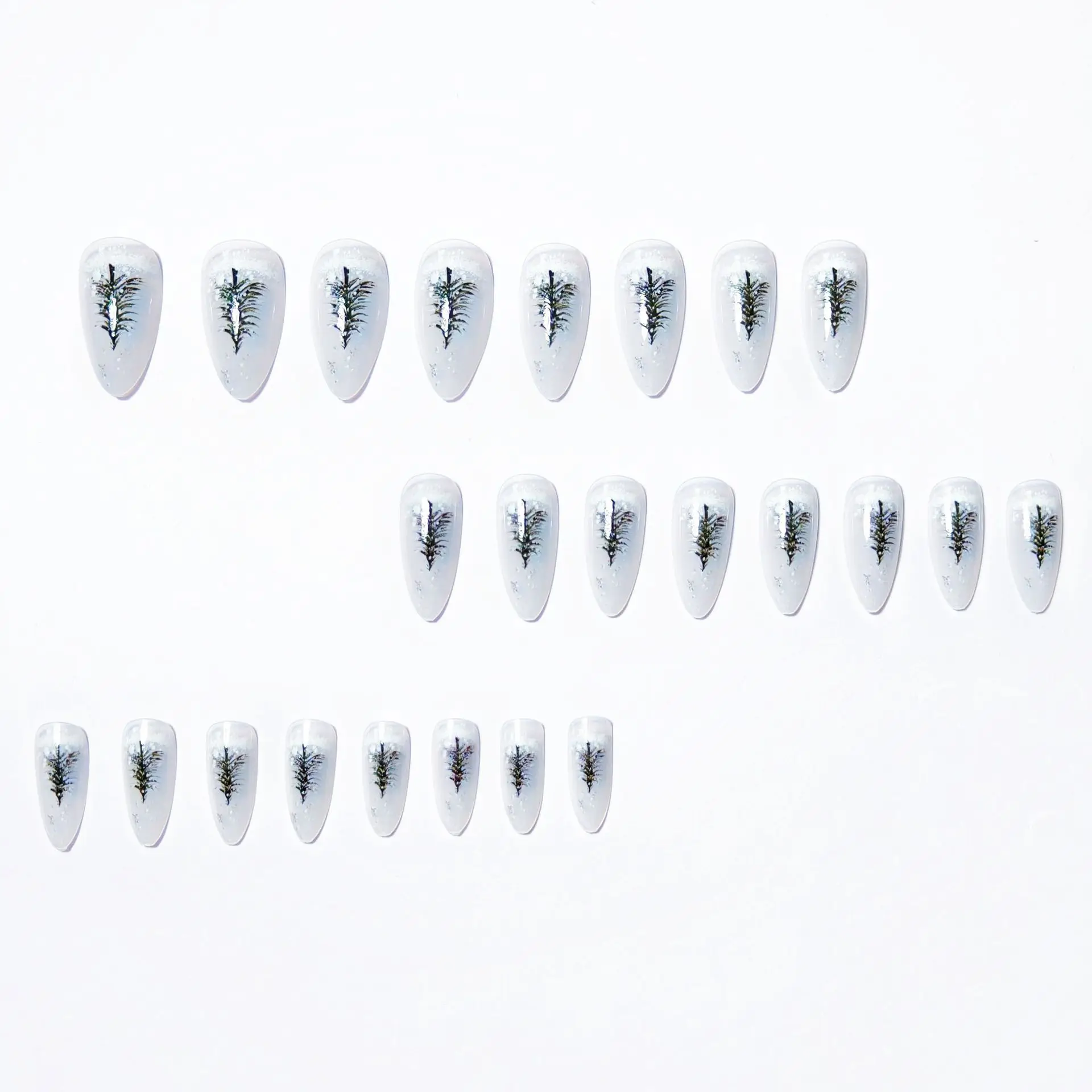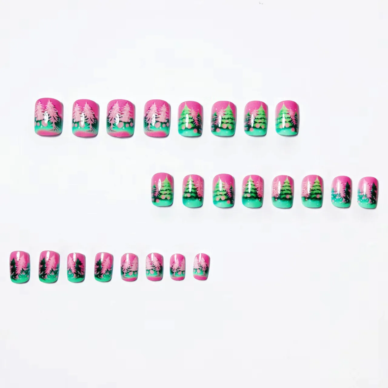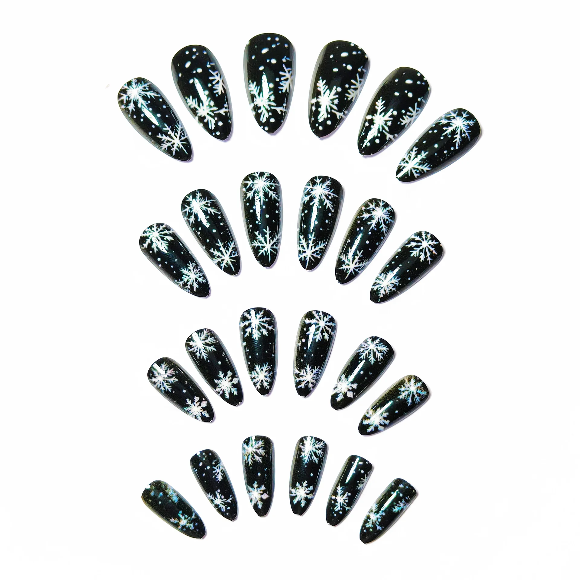 Medium long fake nails for Chirstmas party Square almond tips christmas tree snowflake gift snowman press on false nail art set