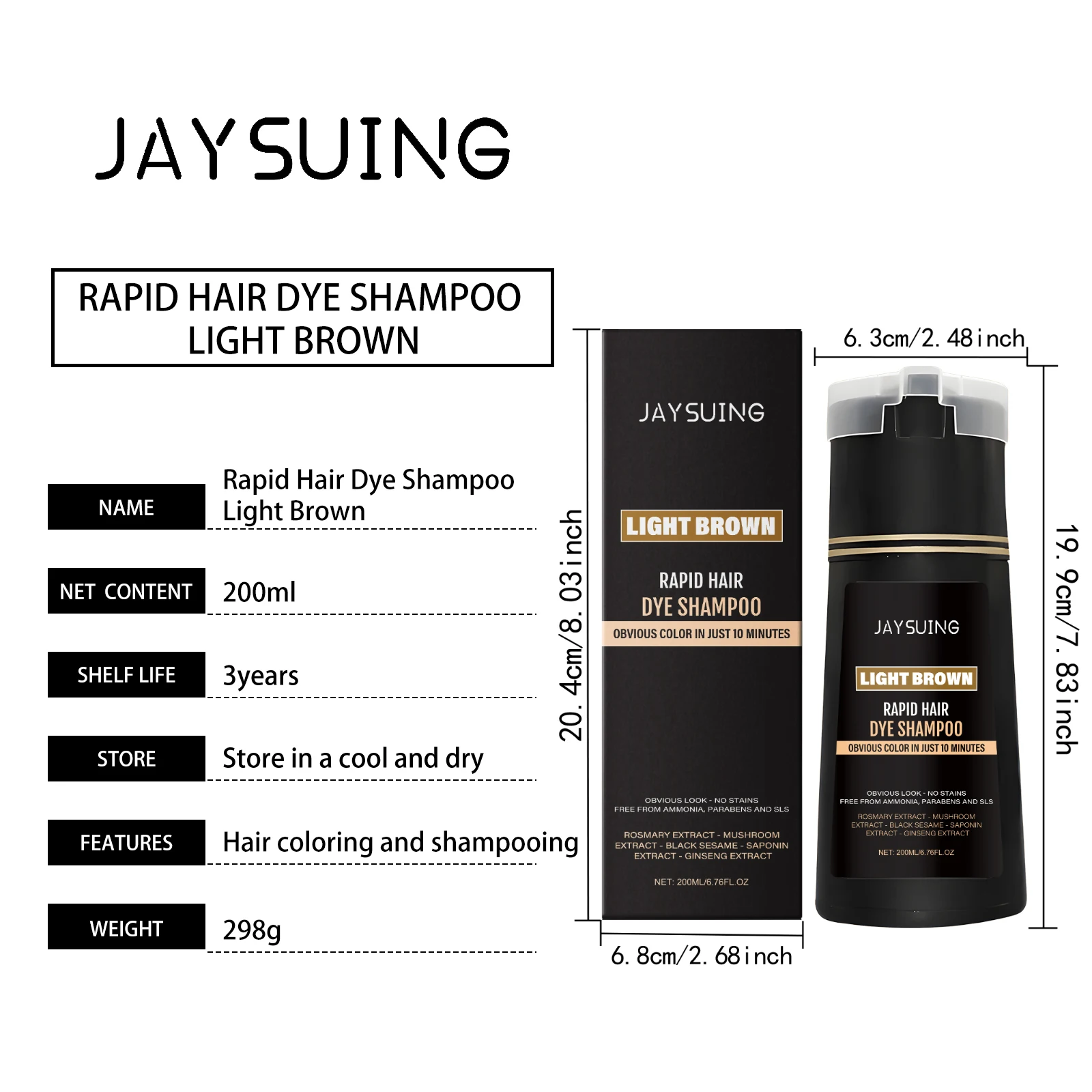 Jaysuing Men Hair Dye Shampoo 3 in 1 for Gray White Hair Coverage Natural Herbal Ingredient Brown Hair Coloring Black Beard Color Shampoo 200ml