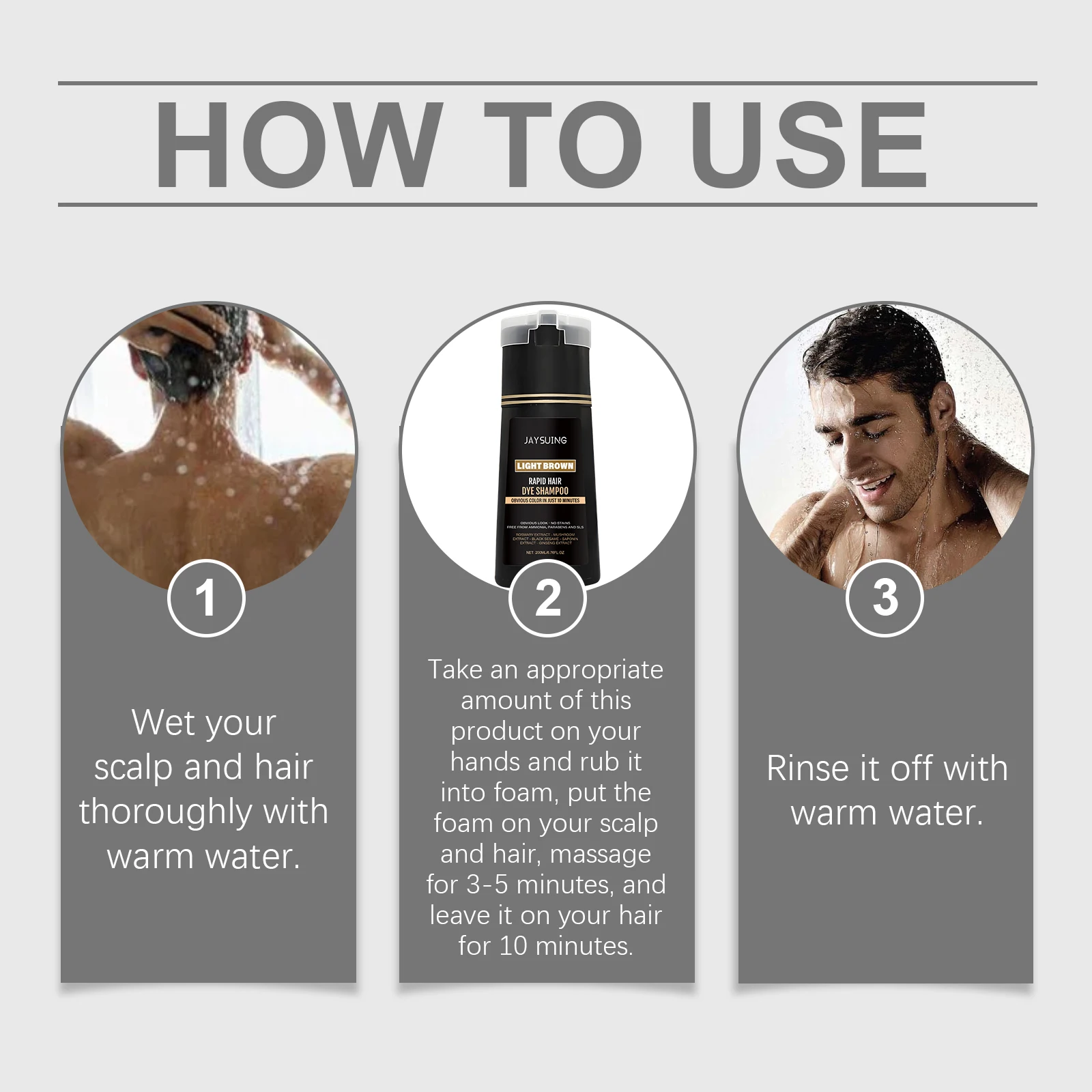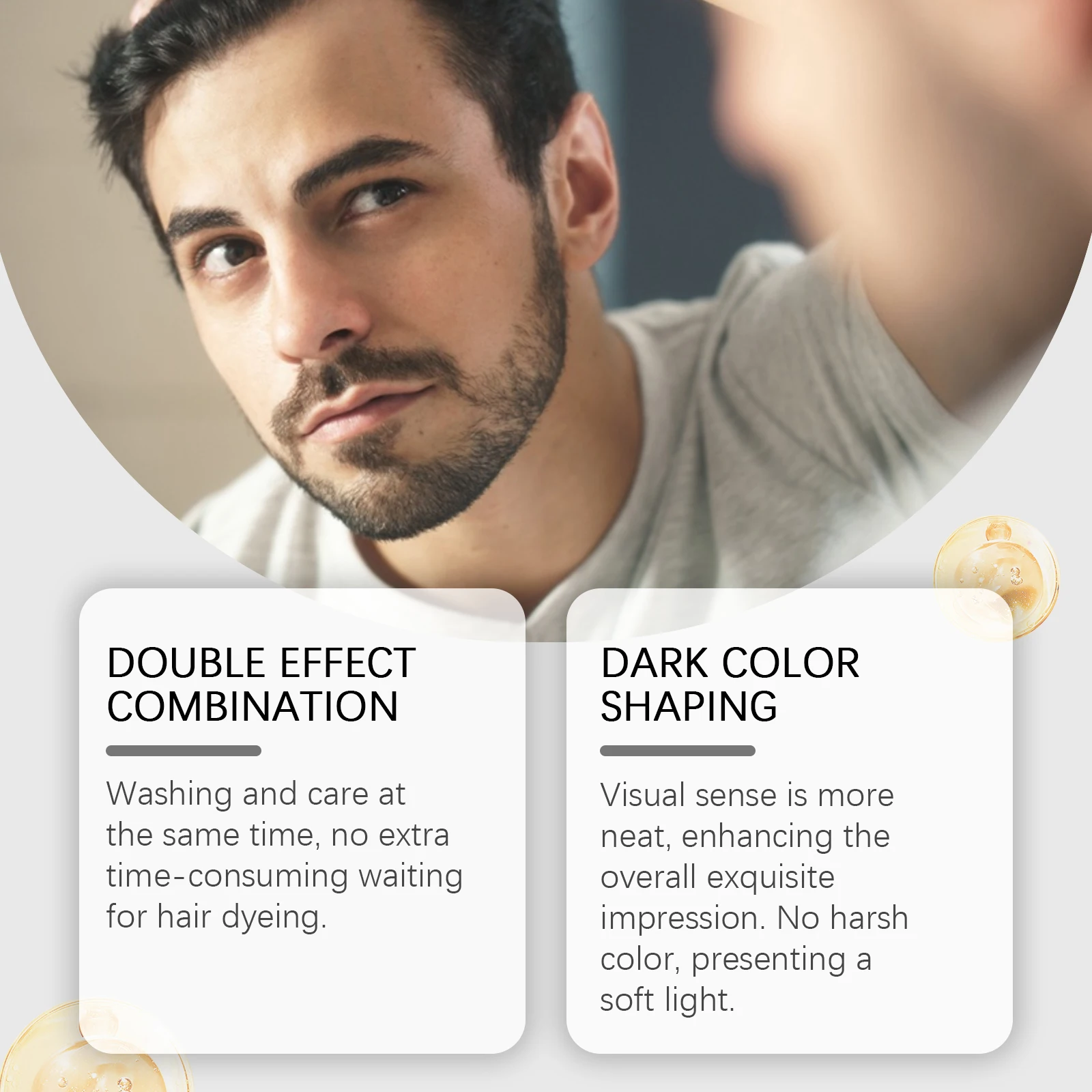 1.Experience the convenience of our instant hair dye shampoo that transforms white hair to black effortlessly, providing a quick and effective solution for men's grooming needs.
