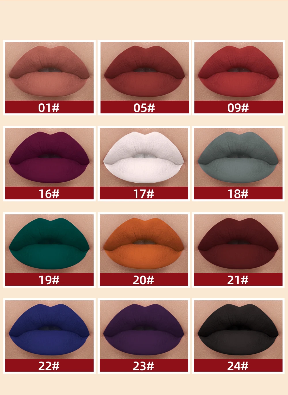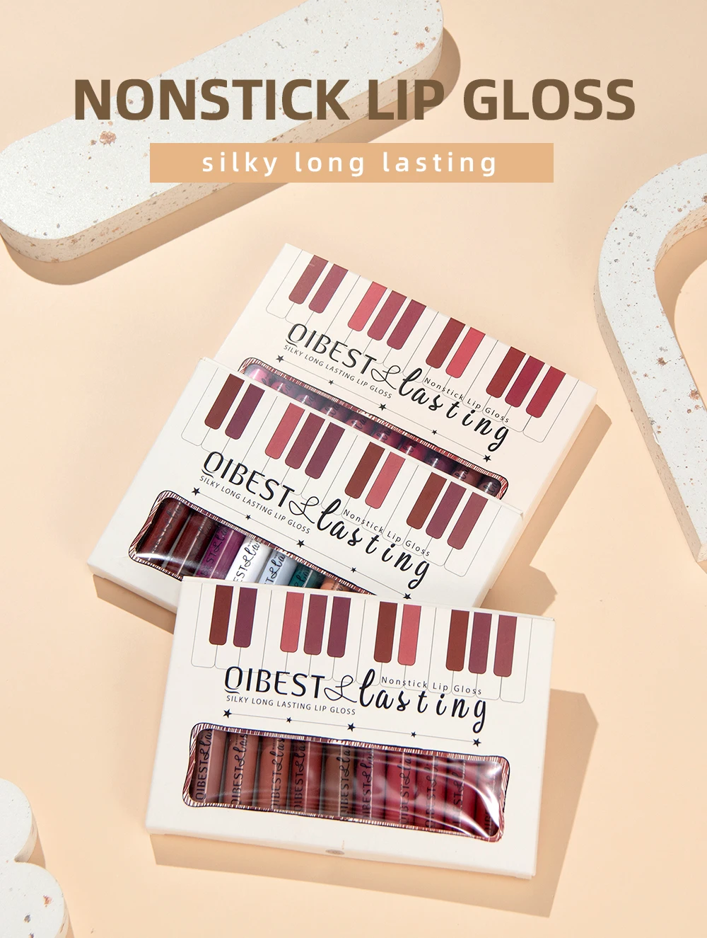 QIBEST 12 Colors Matte Liquid Lipstick Sets Lip Gloss Waterproof Long Lasting Sexy Red White Black Nude Lipgloss Makeup Sets