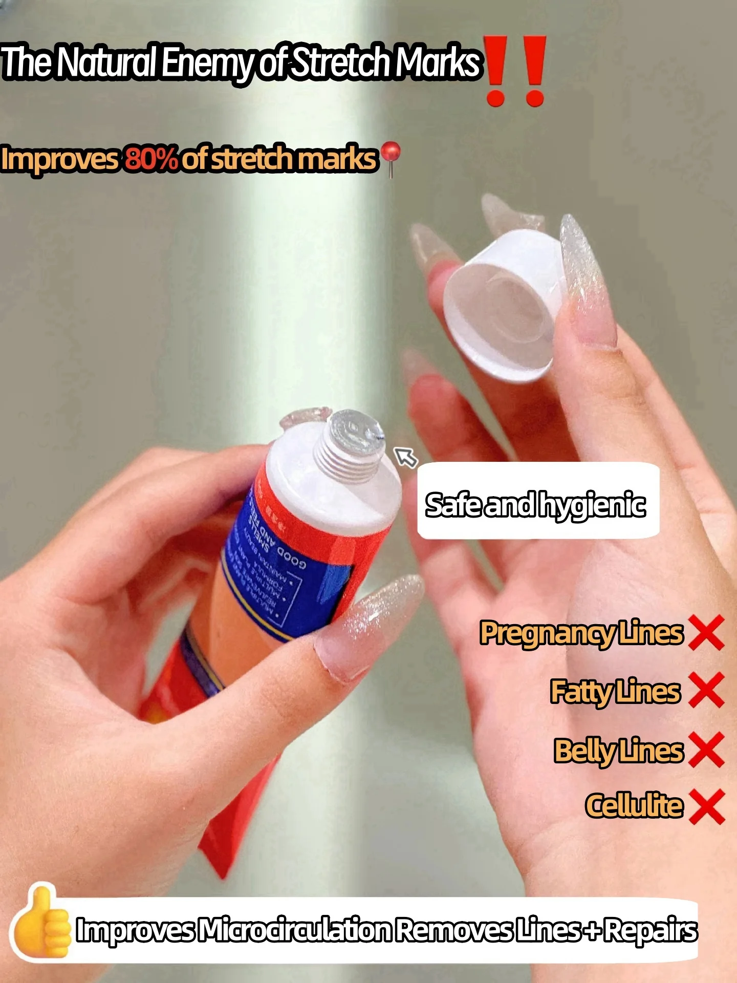 4. Our stretch mark removal cream can deeply penetrate into the skin to repair damaged elastin fibers and promote skin regeneration and help you restore the skin's elasticity and smoothness.