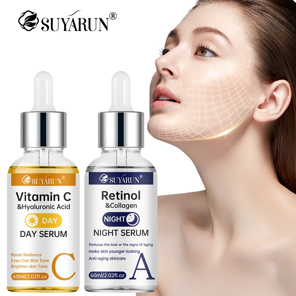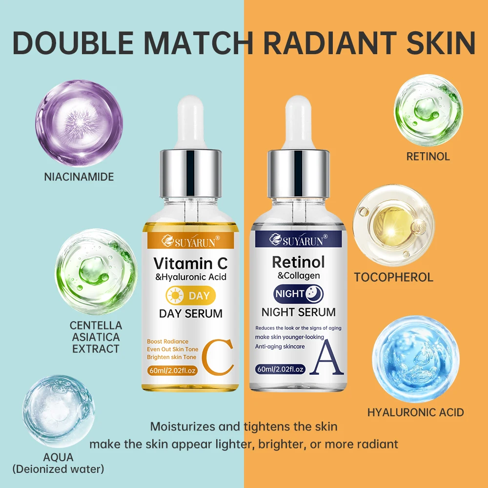 SUYARUN Day Vitamin C Night Retinol Serum - Brightening & Anti-Aging | 2-in-1 Formula for Skin Repair | All Skin Types.